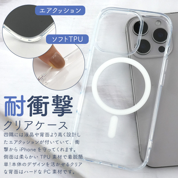 スマホケース iPhone16Pro MagSafe対応 耐衝撃 アイフォン16プロ 背面 保護 カバー クリアケース 透明 クリア 光沢 無地 シンプル マグセーフ対応 ワイヤレス充電対応 スマホ ケース スマホカバー アイフォン iPhone 16Pro アイフォン16Pro