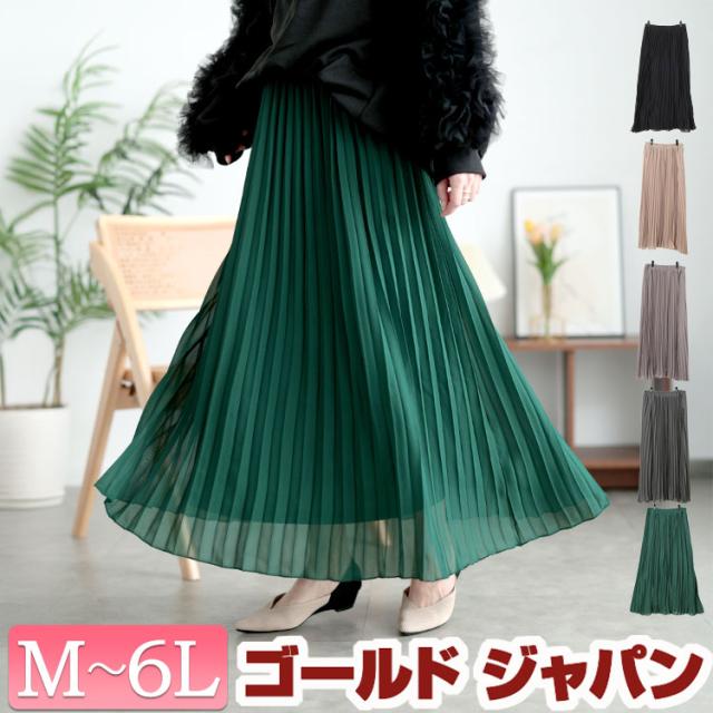 秋新作 大きいサイズ レディース ボトムス スカート シフォンプリーツスカート ロングスカート プリーツスカート ロング プリーツ シフォン ストレッチ ゆったり 春服 夏服 秋 冬 M L LL 2L 3L 4L 5L 6L ブラック 黒 グレー チャコール ベージュ グリーン ゴールドジャパン