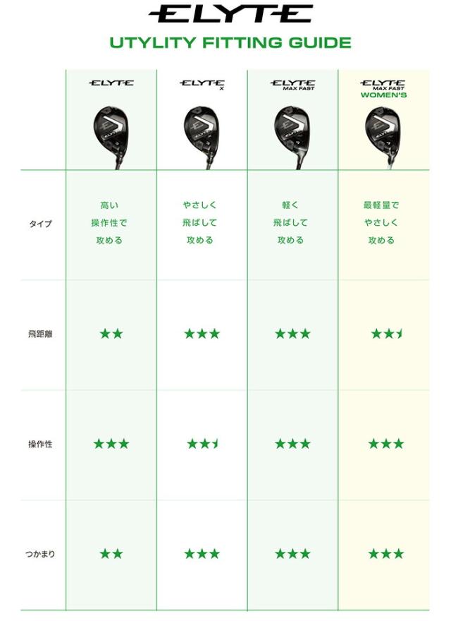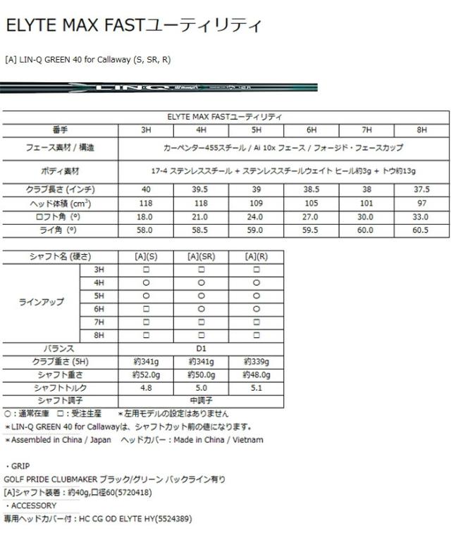 キャロウェイ ELYTE MAX FAST ユーティリティ LIN-Q GREEN 40 for Callaway カーボンシャフト 2025年モデル[日本仕様][Callaway][エリート マックス ファスト]