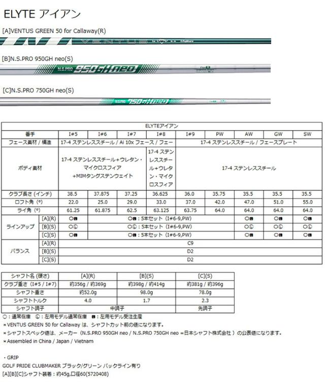 キャロウェイ ELYTE アイアン 単品(I#5、AW、GW、SW)NS PRO 950GH neo(S)/NS PRO 750GH neo(S)スチールシャフト 2025年モデル[日本仕様][Callaway][エリート]