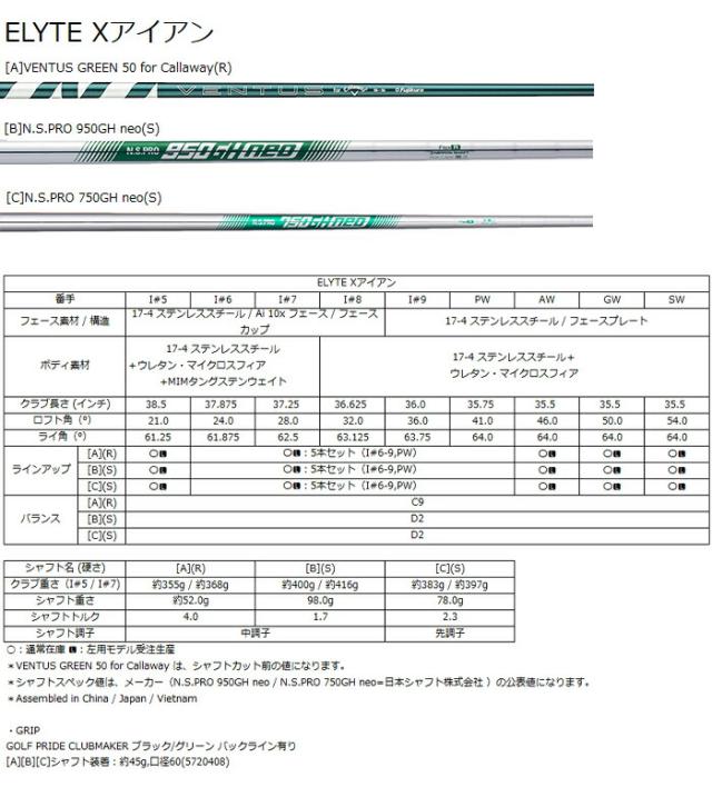 キャロウェイ ELYTE X アイアン 単品(I#5、AW、GW、SW)NS PRO 950GH neo(S)/NS PRO 750GH neo(S)スチールシャフト 2025年モデル[日本仕様][Callaway][エリート エックス]