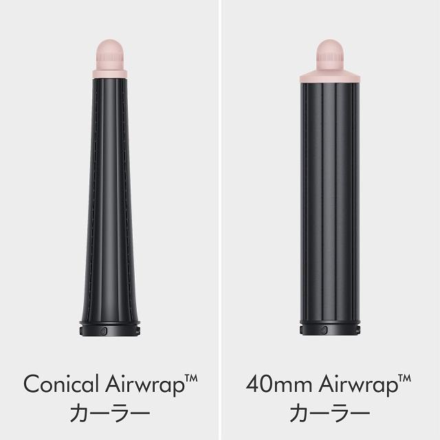 ※Airwrap カーラーを付けた場合本体重量 658g コードの長さ 2.675m 同梱物 Conical Airwrap™ カーラー、スムージングドライヤー、フィルタークリーニングブラシ、40mm Airwrap™ カーラー、スムージングブラシ(ソフト)、収納バッグ 風量調整 3段階 風温調整 2段階+冷風