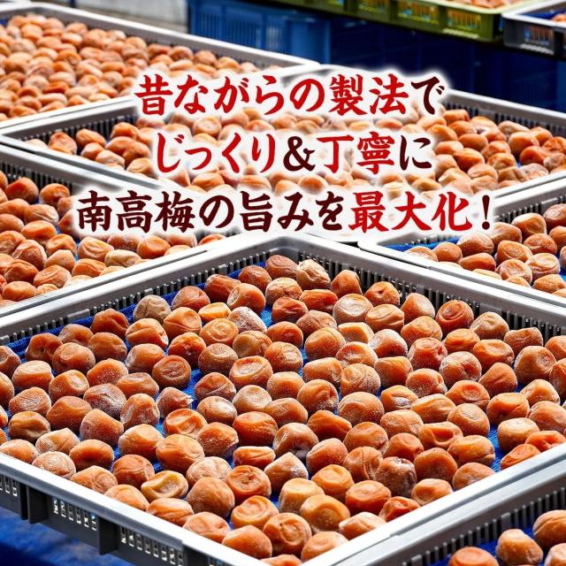 全国で収穫される梅の6割以上を占める南高梅。皮が薄く、肉厚の柔らかい果肉が特徴で、梅の最高級ブランドです。しかし、その特徴から収穫・選別・漬け込み加工時に薄皮が破れてしまう事があります。今回は、そんな正規品から弾かれてしまった訳ありの南高梅を集めて破格値で大放出!