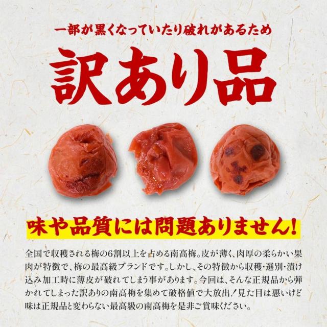 見た目は悪いけど味は正規品と変わらない最高級の南高梅を是非ご賞味ください。