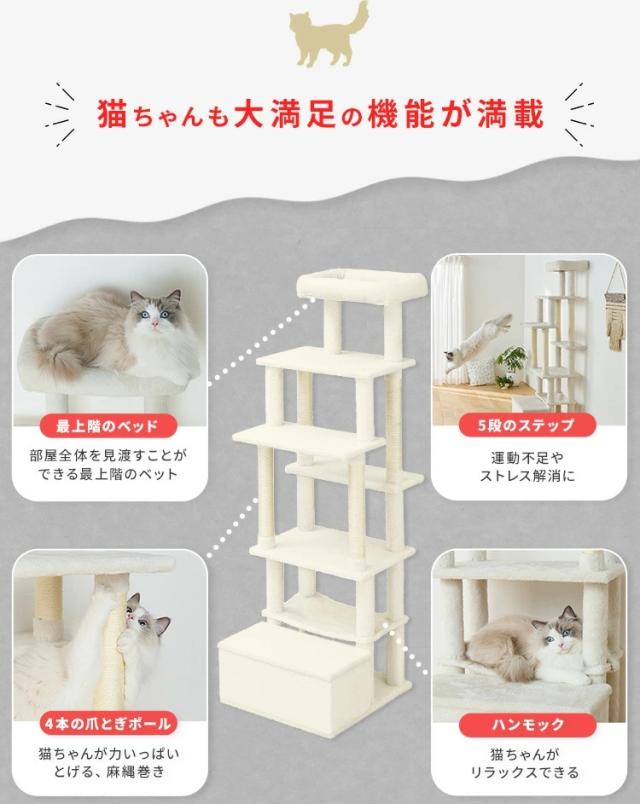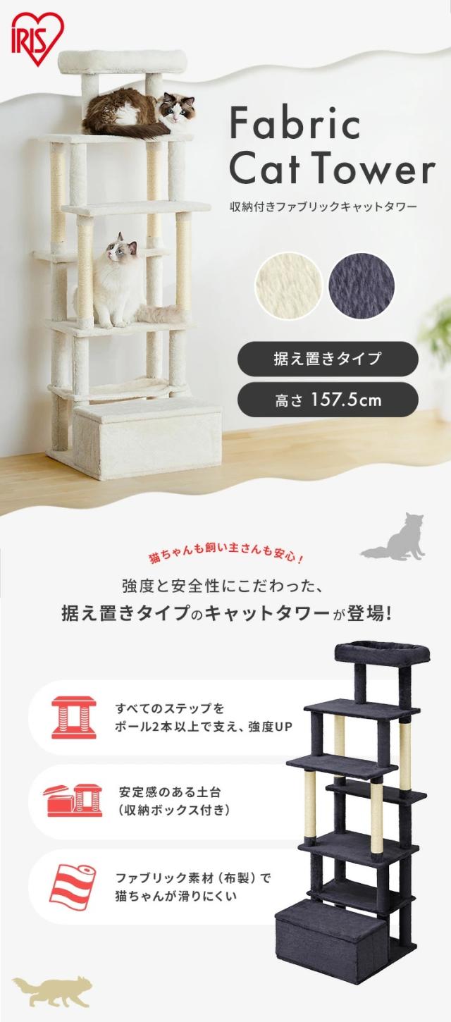 キャットタワー 据え置き 多頭飼い 高さ157.5 ステップ 5段 滑りにくい 強度 安定感 収納付 麻縄巻き 爪とぎ ハンモック 猫タワー 高い おしゃれ 北欧 ファブリック 運動不足 遊び場 猫用タワー 猫ポール 猫用品 アイリスオーヤマ SFC-157 *