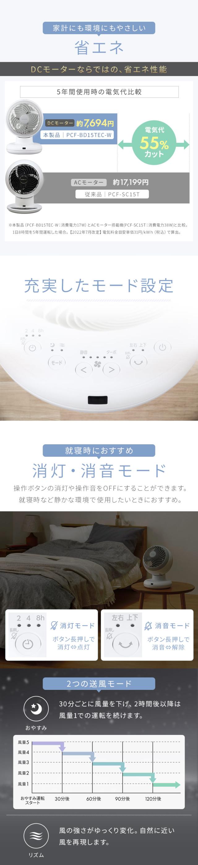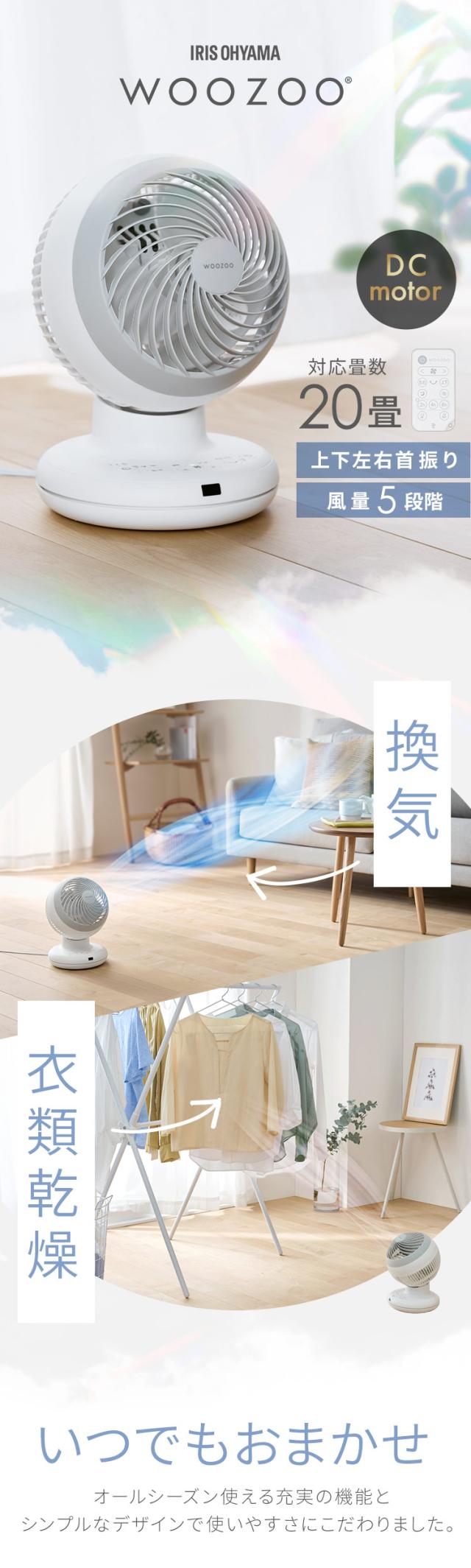サーキュレーター アイリスオーヤマ dcモーター 洗える 上下 左右 首振り 20畳 省エネ 軽量 扇風機 パワフル送風 換気 節電 電気代 リモコン付 タイマー付き 風量5段階 衣類乾燥 分解 梅雨対策 WOOZOO PCF-BD15TEC