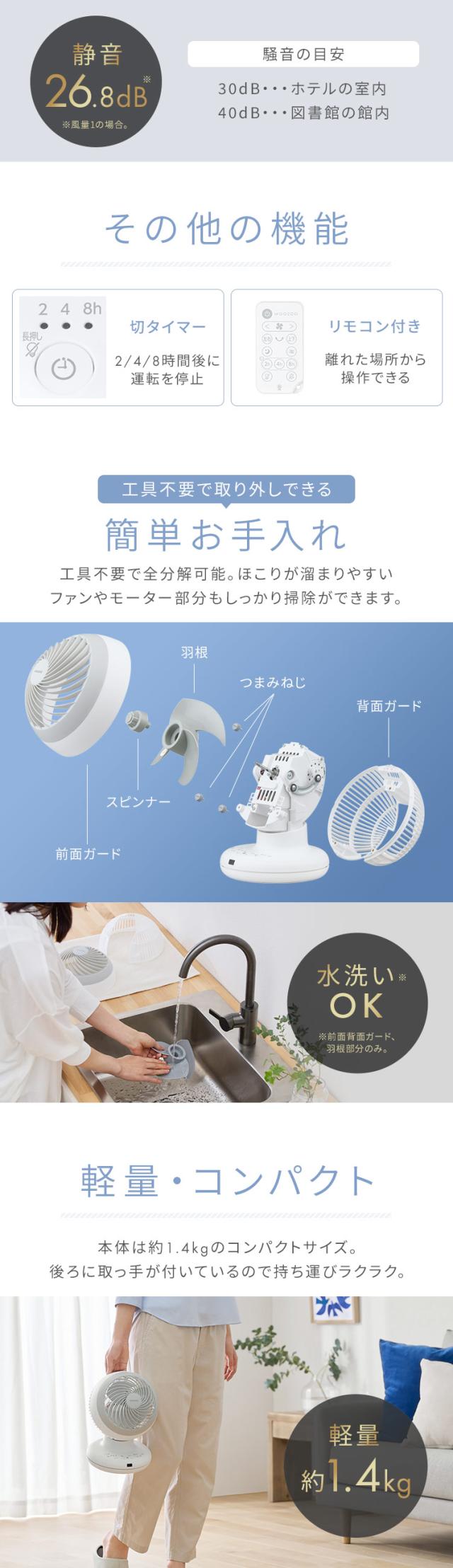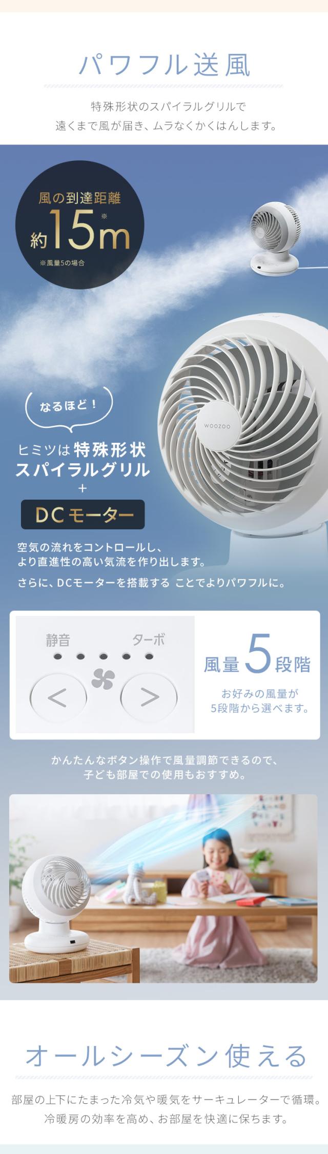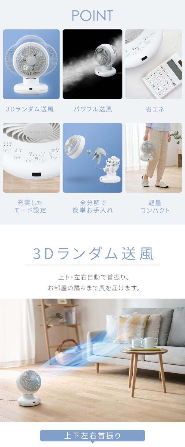 (検索用:サーキュレーター dcモーター 20畳 コンパクト ランダム送風 おやすみモード 省エネ 静音 軽量 タイマー付き お手入れ簡単 全分解 WOOZOO 4967576740906)