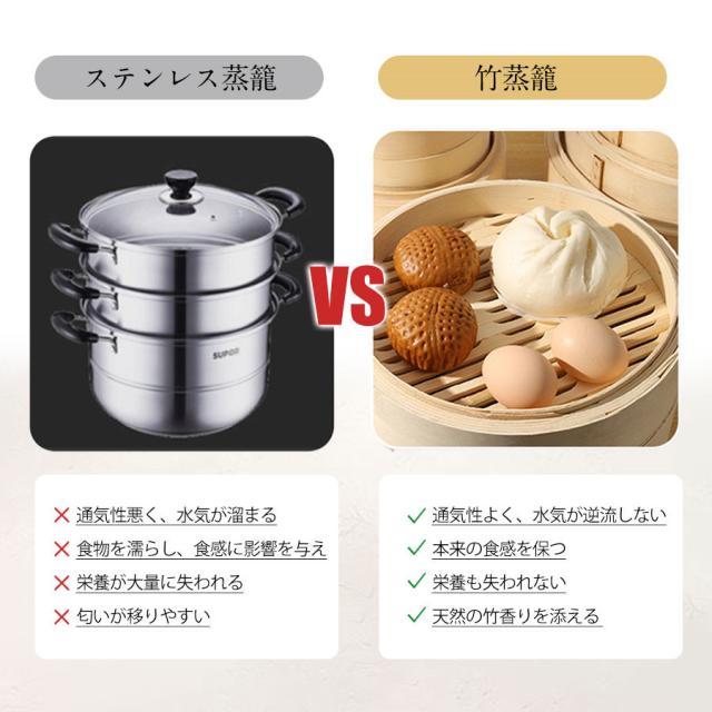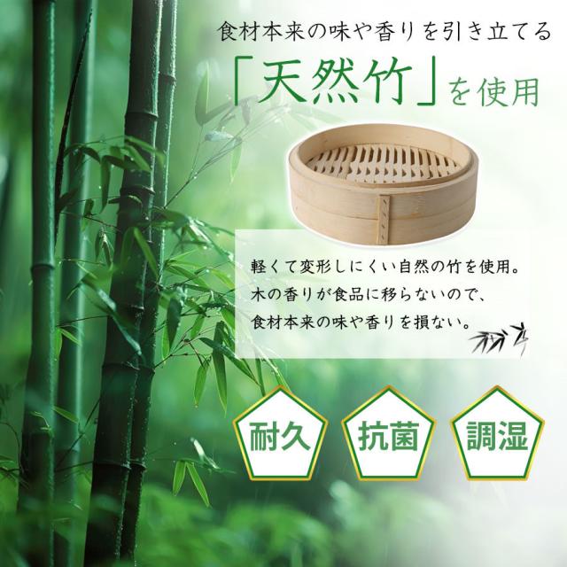 ・本商品は天然竹を使用した高さ調整輪付の2段中華せいろです。竹製のせいろはお料理に香りが移らず、抗菌性・調湿性の高い素材です。