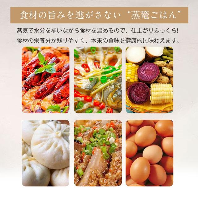 ・二段せいろは重ねて効率よく時短調理が可能です。下段に主食、上段に冷凍ご飯やパンなど、時間がない朝などに省スペース・省エネで同時調理が可能です。