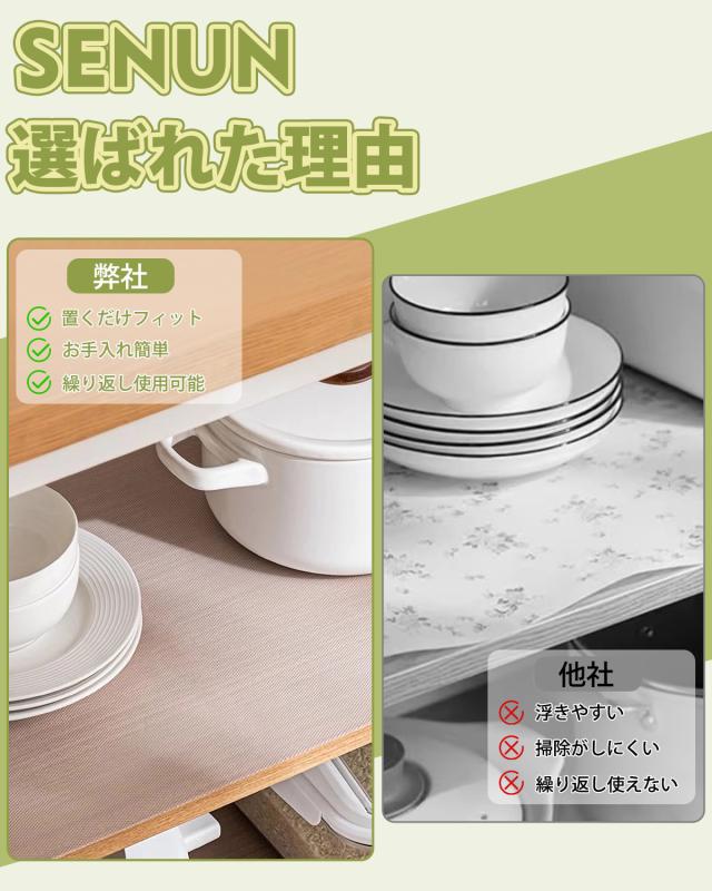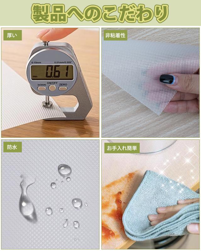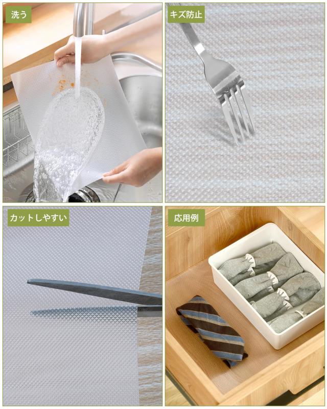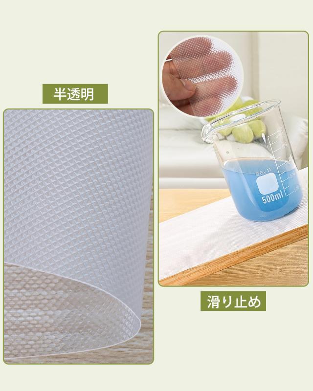シートの表面にユニークな凹凸デザインで、ある程度の滑り止め効果があります。食器シートは敷いておくだけで使えるので、清潔や再利用など便利です。防水、防油、防塵や汚れ防止効果的で、家具を清潔に保ち、家具を効果的に保護します。
