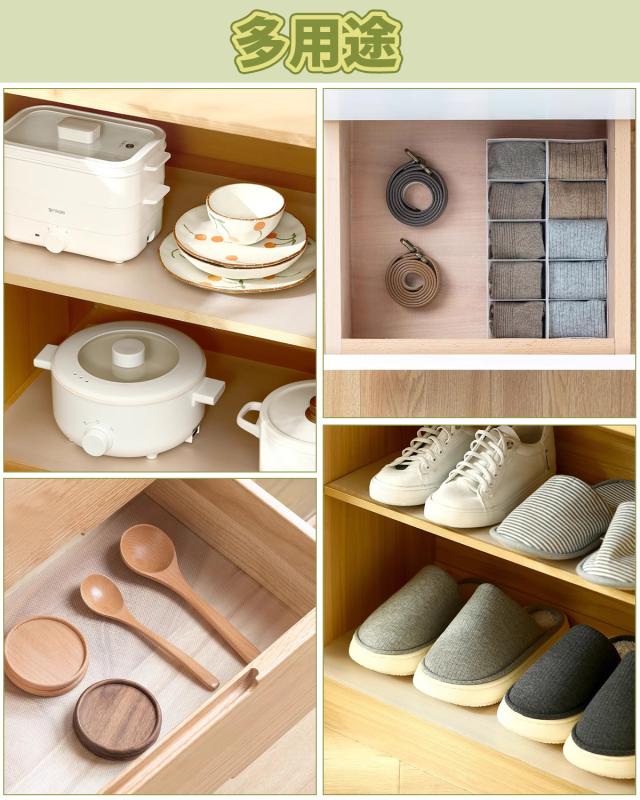 冷蔵庫のロッカー、食器棚、引き出し、流し台、ガス台、炊飯器やトースターの下に、デスクトップ、キャビネット、ワードローブ、下駄箱、本棚、ロッカー、収納ボックスなどに使用することができます。