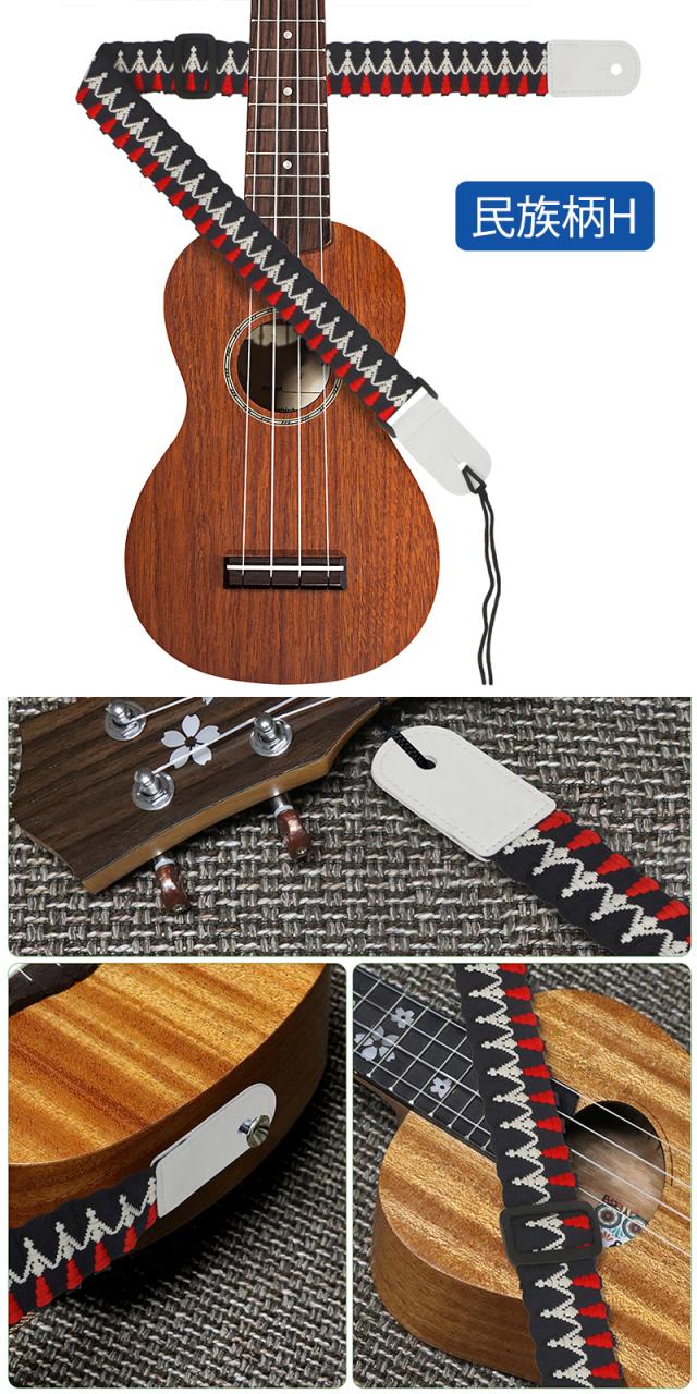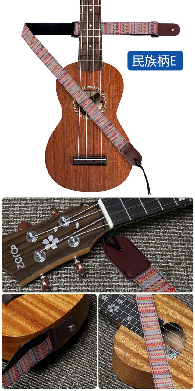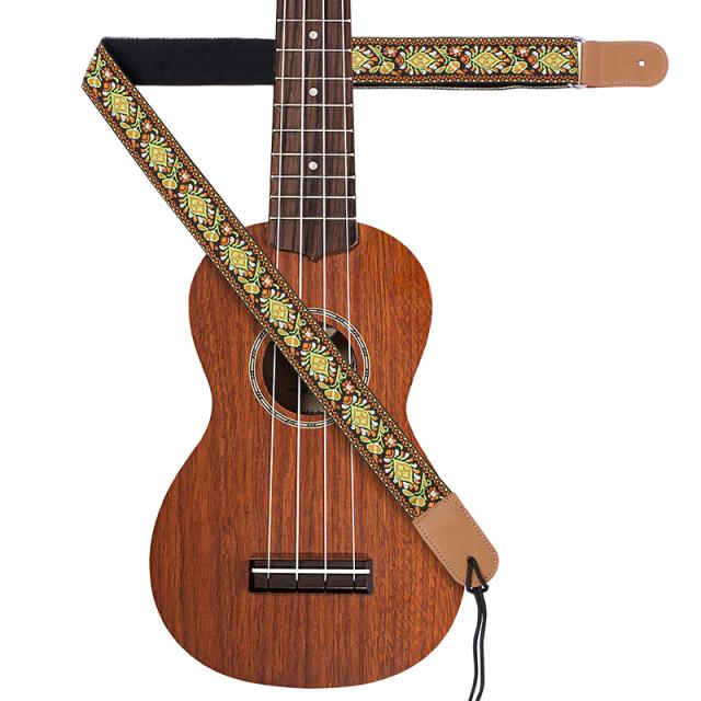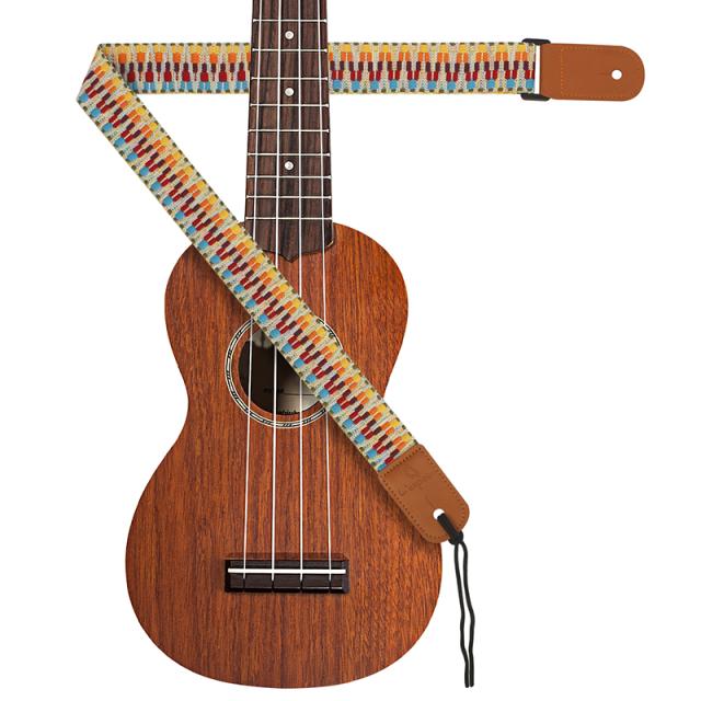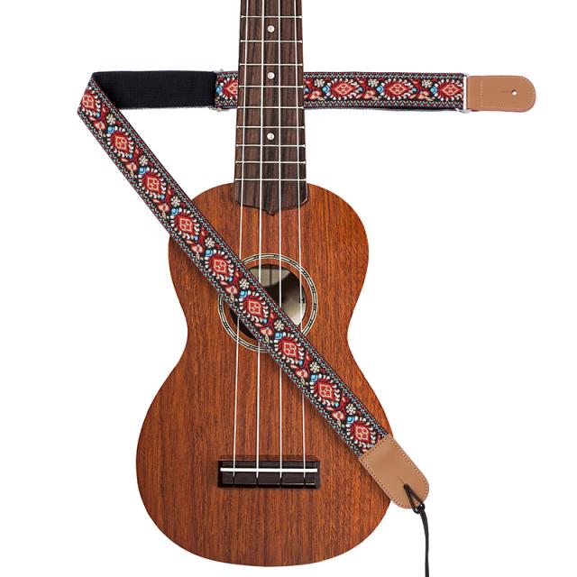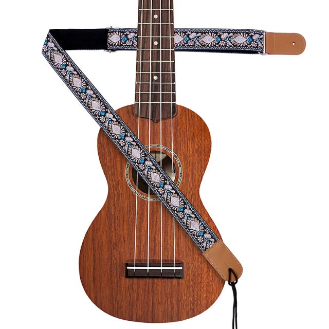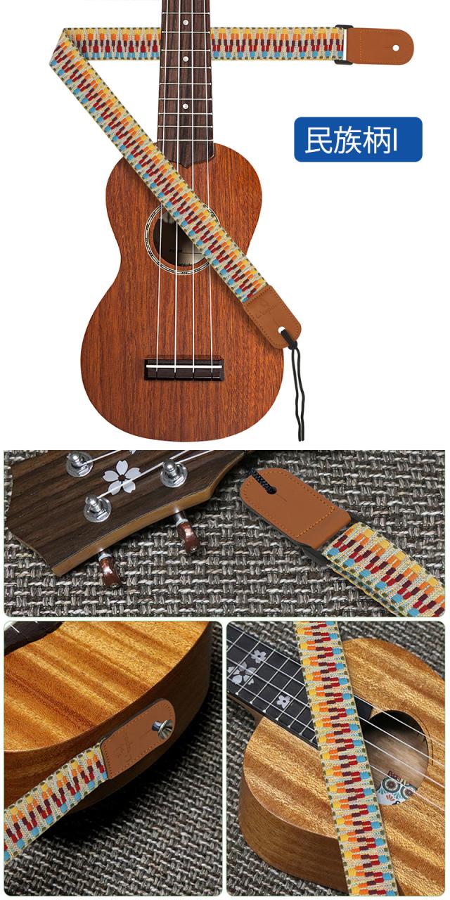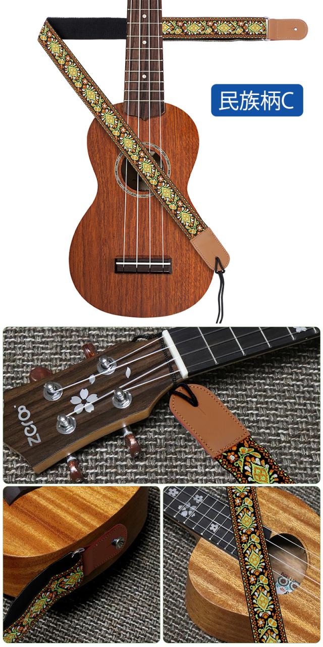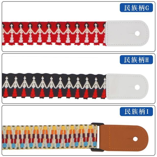 ウクレレストラップ 革 ストラップ ハワイギターベルト 肩掛けタイプ 刺繍 ジャカード織 長さ調整可能 民族柄 可愛い 4柄選択可 おしゃれ かわいい しっかり