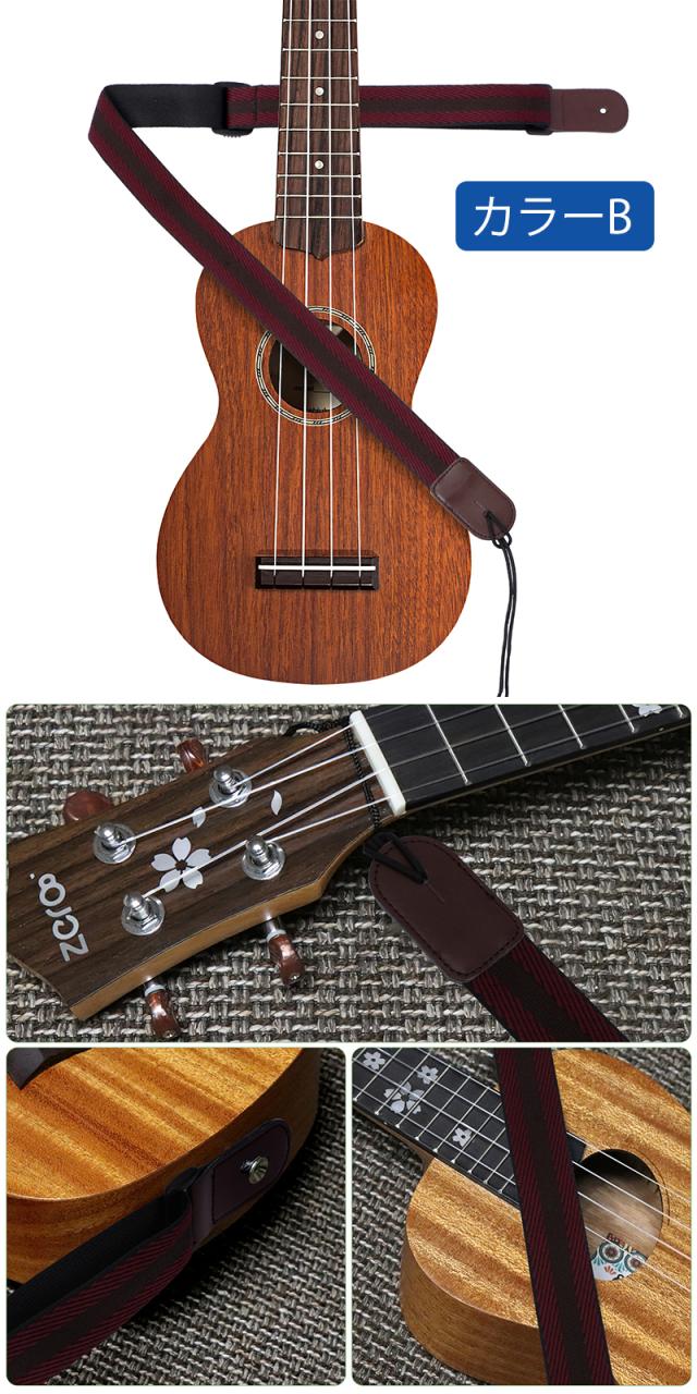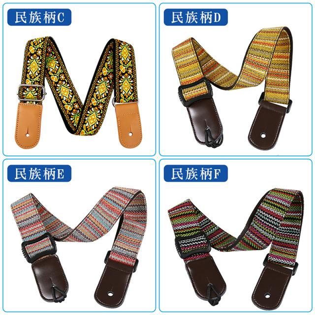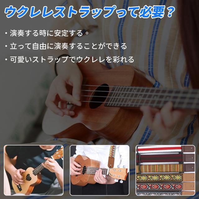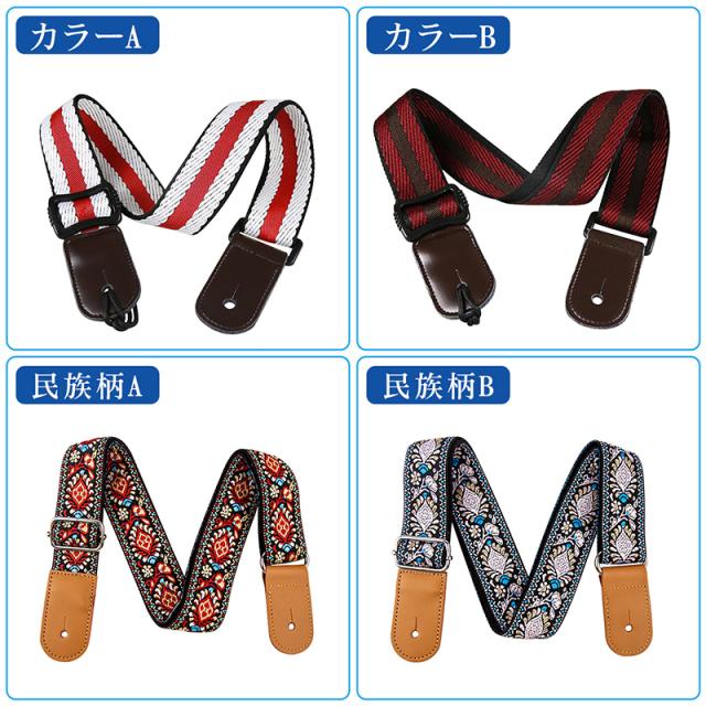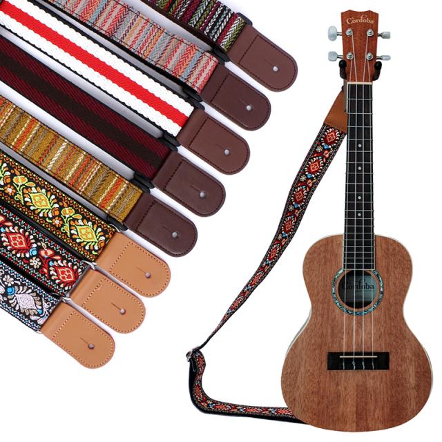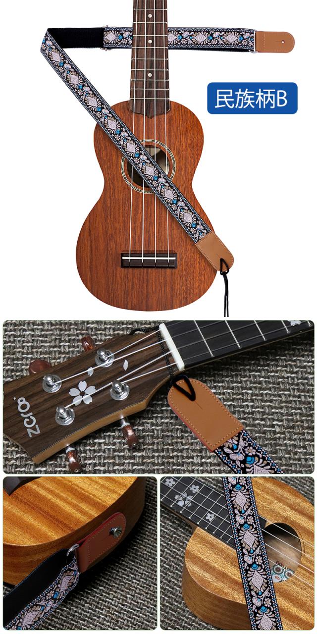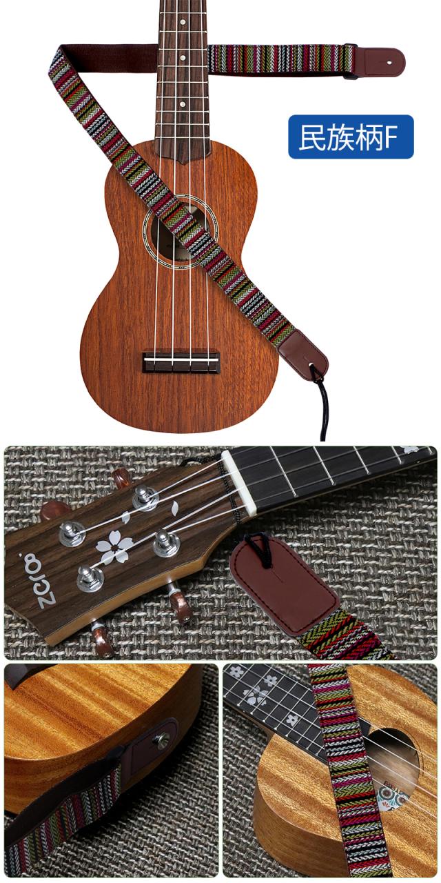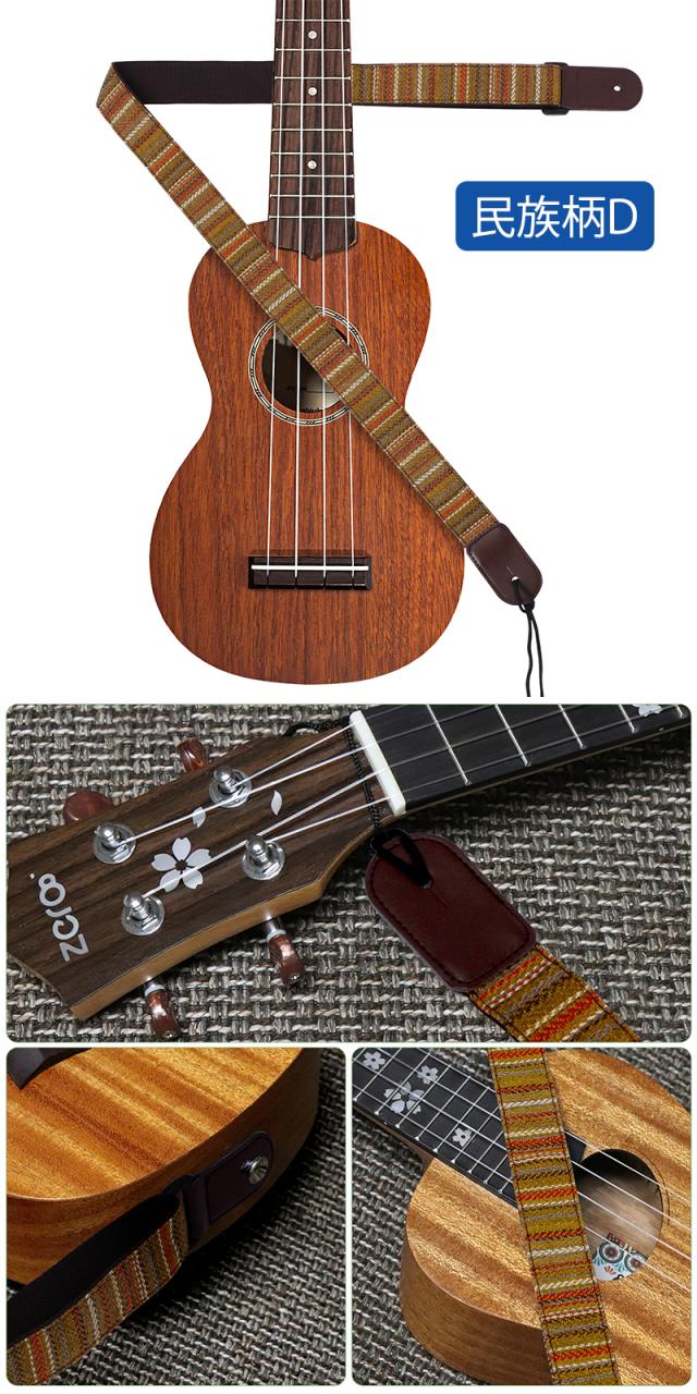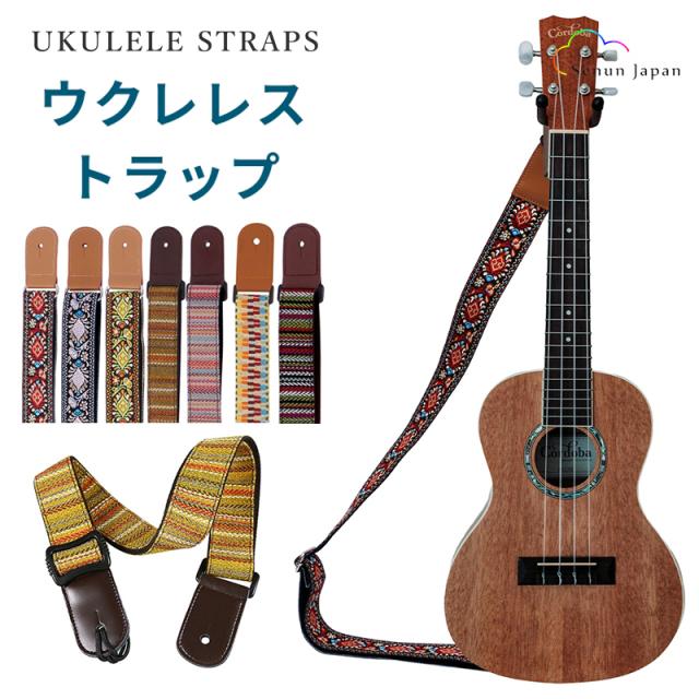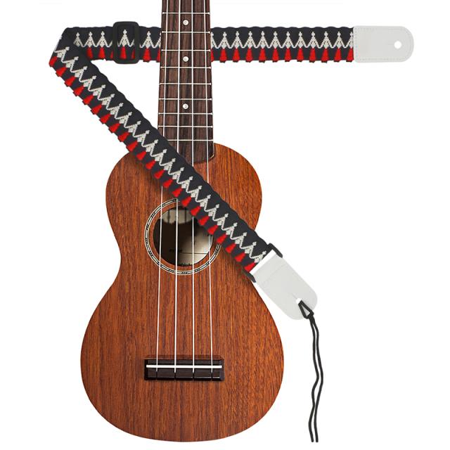 ウクレレストラップ 革 ストラップ ハワイギターベルト 肩掛けタイプ 刺繍 ジャカード織 長さ調整可能 民族柄 可愛い 4柄選択可 おしゃれ かわいい しっかり