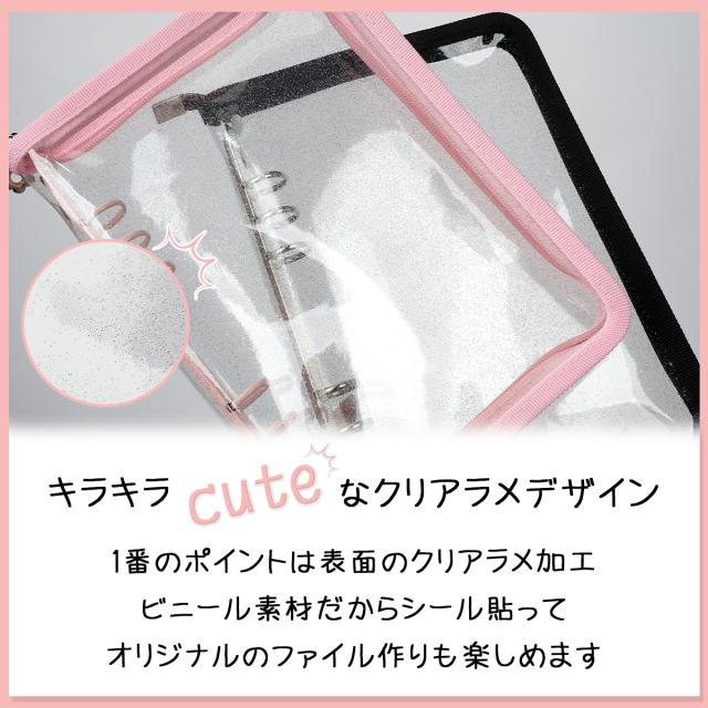 | 【キラキラcuteなクリアラメデザイン】 | 1番のポイントは表面のクリアラメ加工ビニール素材だからシール貼ってオリジナルのファイル作りも楽しめます |