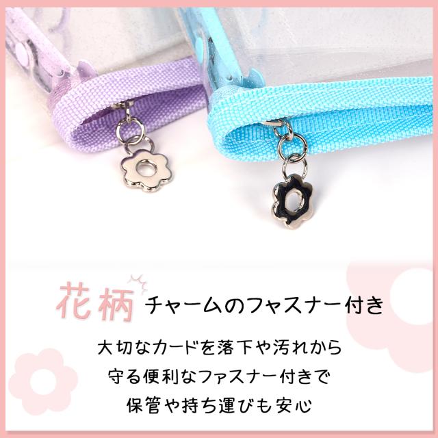 【花柄チャームのフャスナー付き】 | 大切なカードを落下や汚れから守る便利なファスナー付きで保管や持ち運びも安心 |