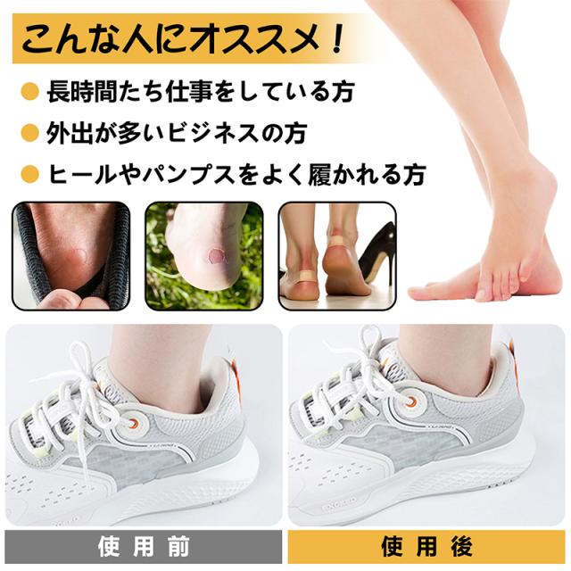 長時間たち仕事をしている方、外出が多いビジネスの方、ヒールやパンプスをよく履かれる方に適しています。 靴ズレの防止、滑り止め、靴のサイズ調整、つま先の痛みを緩和など。靴のすべての種類に適し、新しい靴、ハイヒール、パンプス、シュール、ドレスシューズ、ビジネスシューズ、カジュアルシューズ、スニーカーなど様々な靴に使えます。 |