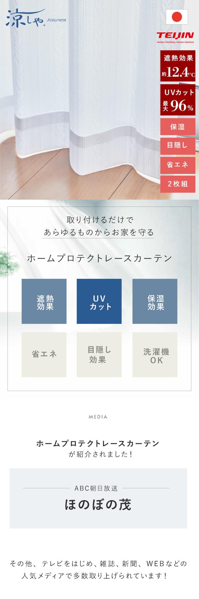 帝人の遮熱糸「涼しや」を採用した高機能レースカーテン。