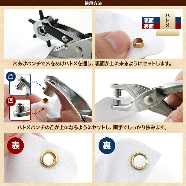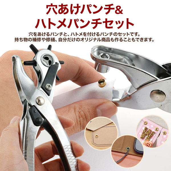 穴あけパンチ ハトメパンチ 穴あけ工具 2種セット ハトメ約100個付き 修繕 修復 ハンドメイド DIY 工具 オリジナルタグノートの作成 洋服 小物 アレンジ DIY工具 手芸用工具 パンチプライヤー 腕時計ベルト 穴あけ 穴の追加に