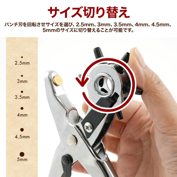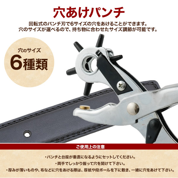※厚みが薄いものや布などに穴をあける際は、厚紙や段ボールを下に敷き、一緒に穴をあけて下さい。