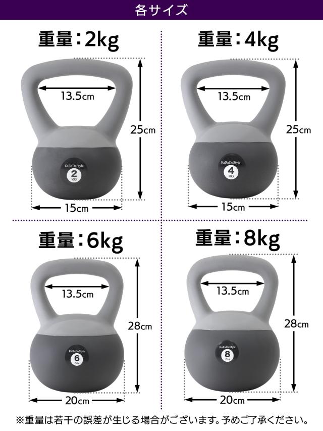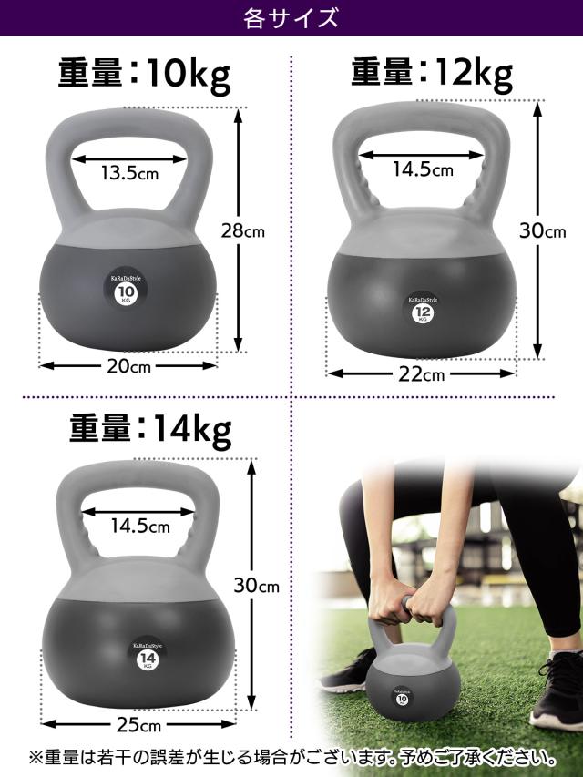 | 商品名 | ケトルベル ソフトタイプ 2kg 4kg 6kg 8kg 10kg 12kg 14kg 7種セット ワイドハンドル 握りやすいグリップ トレーニング ソフトケトルベル 器具 ウエイト 体幹 持久力 筋肉 筋トレ エクササイズ ソフト 防傷 PVC |