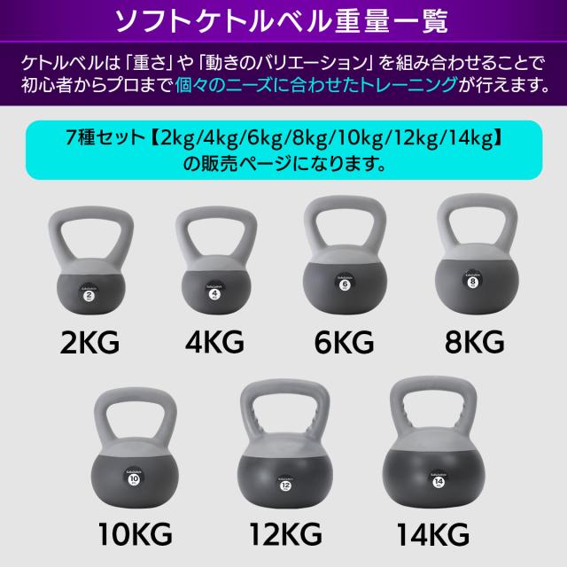 | セット内容 | ソフトケトルベル【2kg/4kg/6kg/8kg/10kg/12kg/14kg】7種セット |