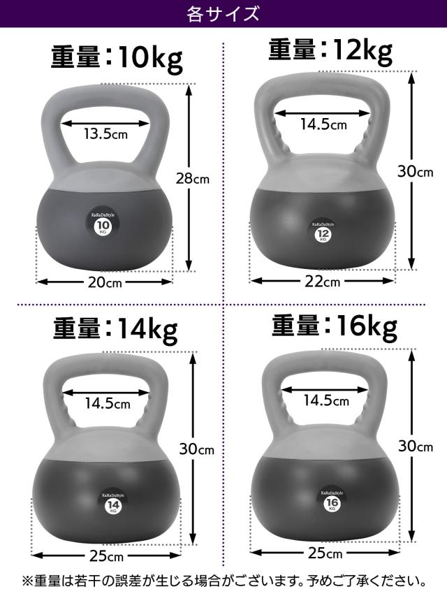 | 商品名 | ケトルベル ソフトタイプ 2kg 4kg 6kg 8kg 10kg 12kg 14kg 16kgセット ワイドハンドル 握りやすいグリップ トレーニング ソフトケトルベル 器具 ウエイト 体幹 持久力 筋肉 筋トレ エクササイズ ソフト 防傷 PVC |