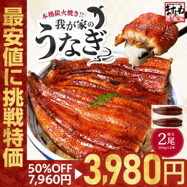 ギフト 半額クーポンで★3,980円送料無料 うなぎ 鰻 ウナギ 特大 極上うなぎ蒲焼き 200g×2尾 約4人前 肉厚ふっくら わが家のうなぎ蒲焼 本格炭焼 化粧箱入 中国産 8段焼き仕上げ 蒲焼き 蒲焼 プレゼント 母の日 父の日 お中元 敬老の日 お中元_stg trend_kaisen