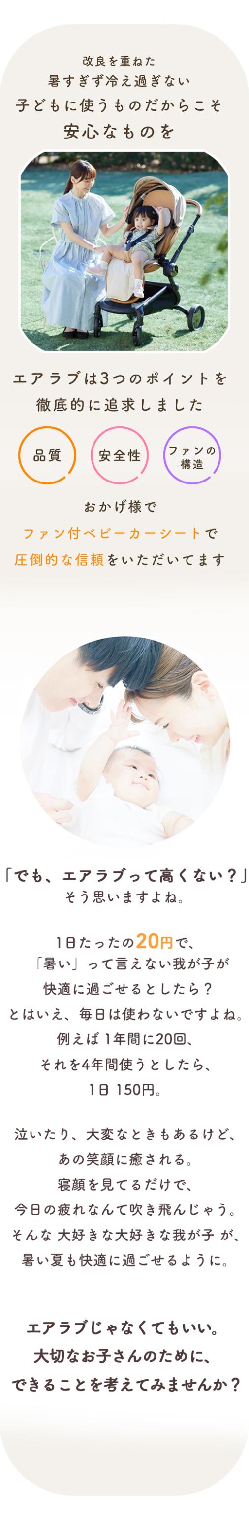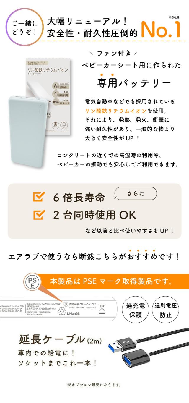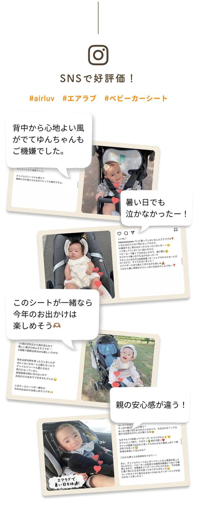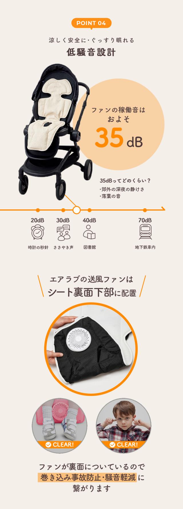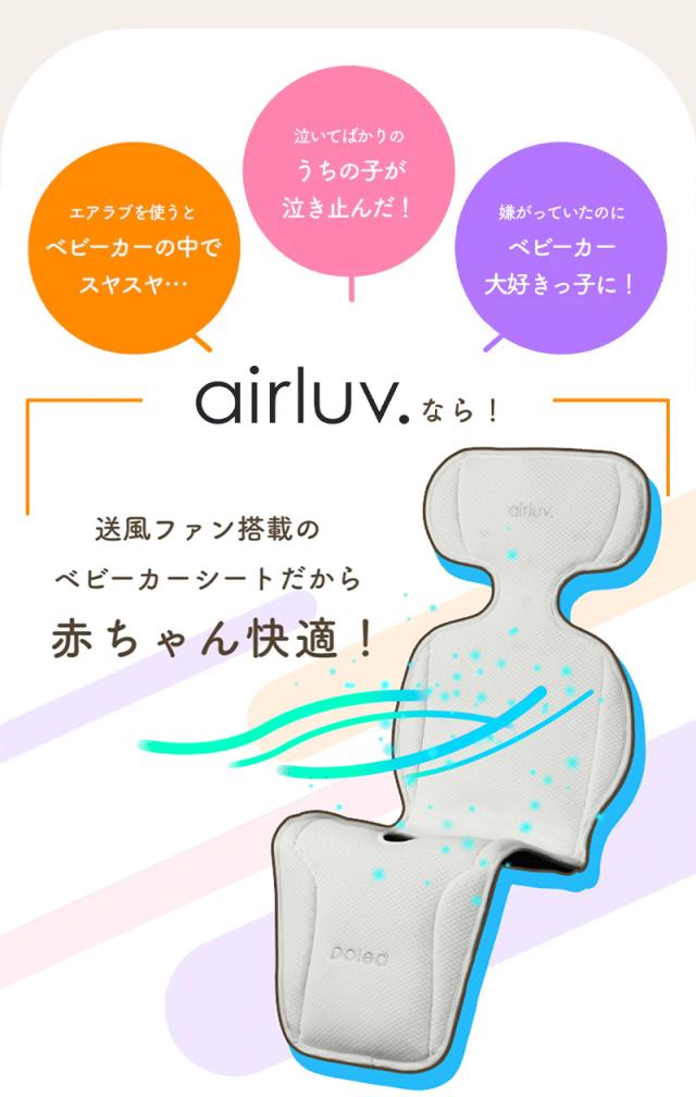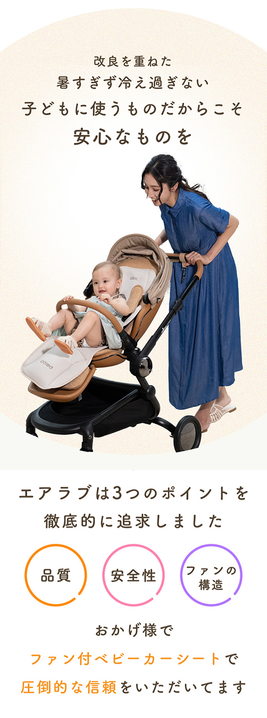 ずっと涼しいファン付きベビーカーシートエアラブ。