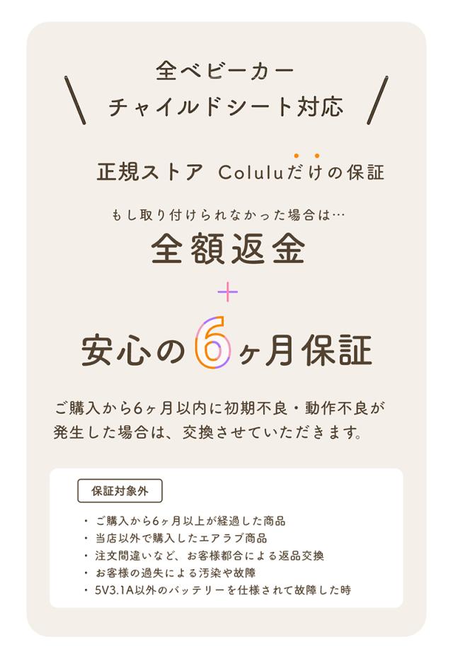 ・ベビーカー以外への取り付けの場合も対象外です(子ども用車いす、バギー、自転車の後部座席など)