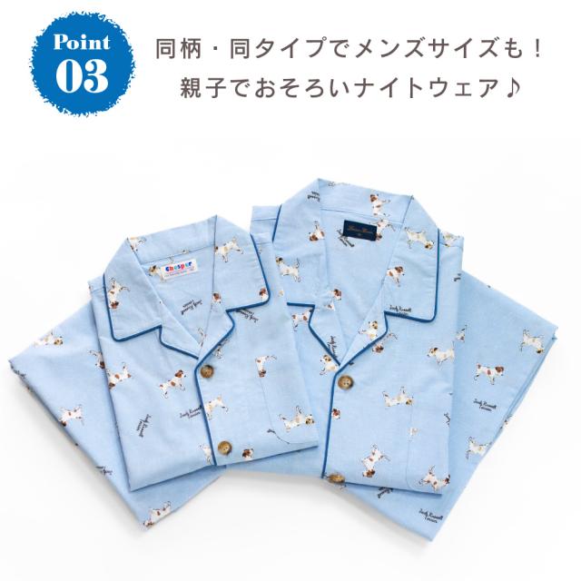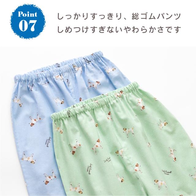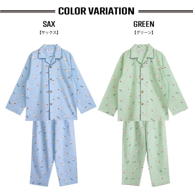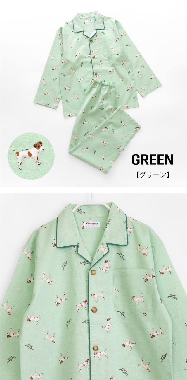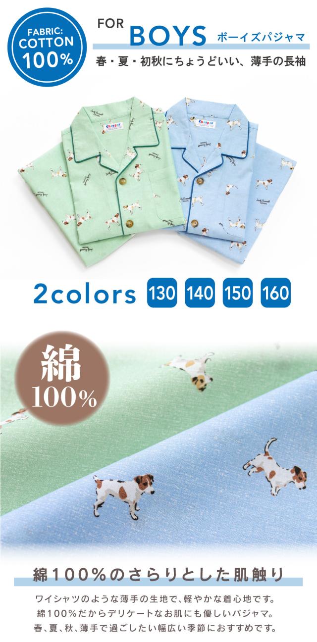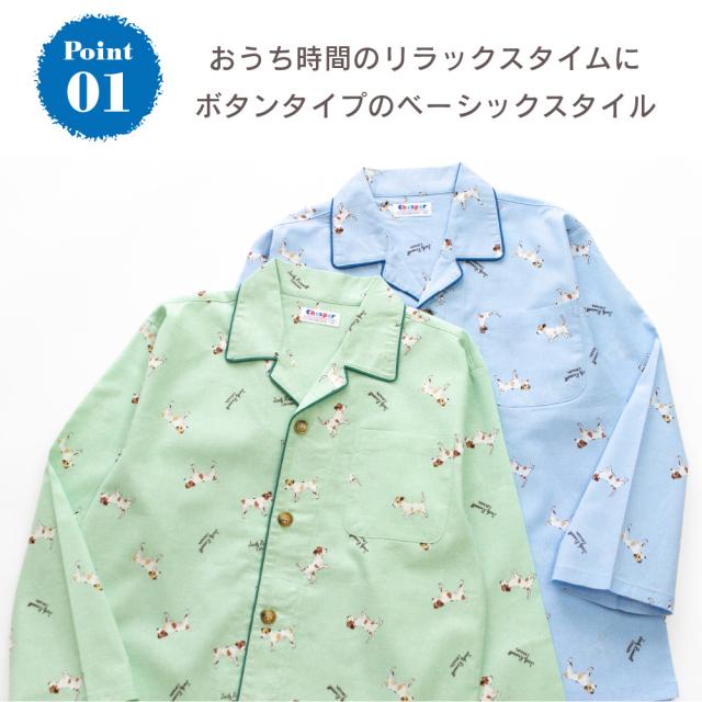 パジャマ キッズ 男の子 綿100% 長袖 春 夏 初秋 前開き ボタン ジャックラッセルテリア 犬柄 薄手のシャツ ブルー グリーン 100 110 120 130 140 150 160 子供 ジュニア ボーイズ おそろい メール便なら 送料無料