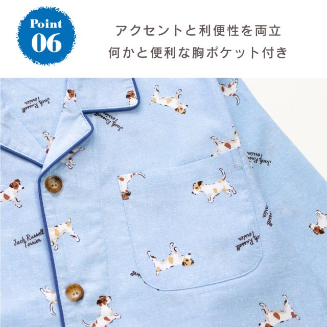 ジャックラッセルテリアが可愛い。爽やかで素敵な犬柄のパジャマです。