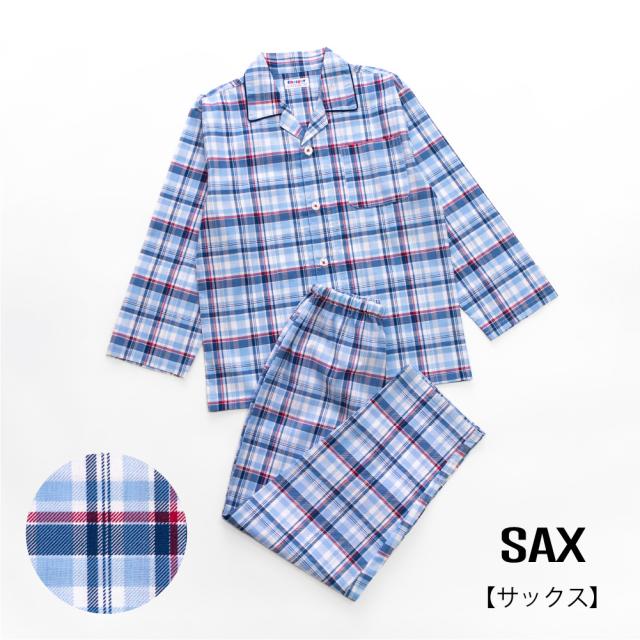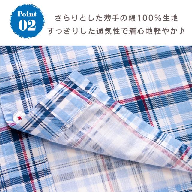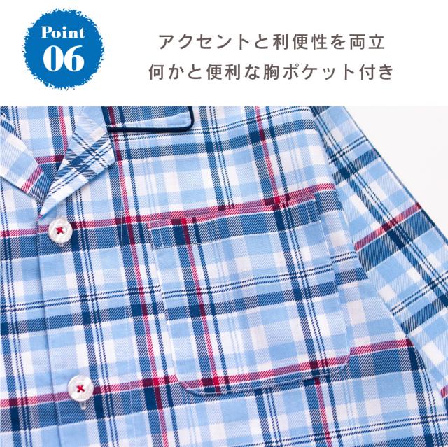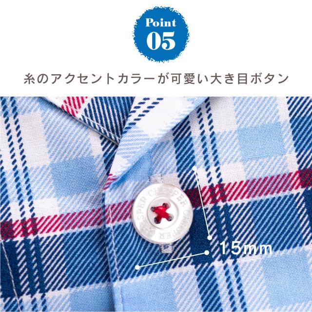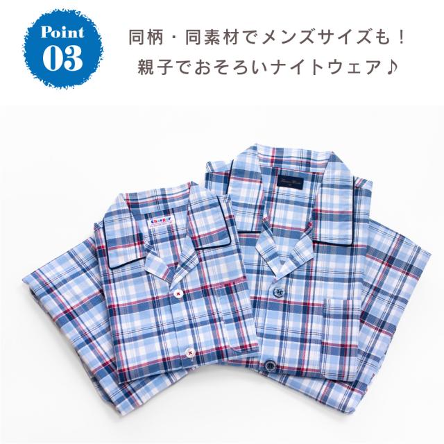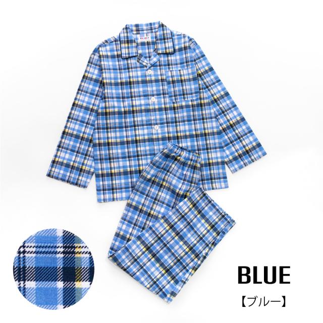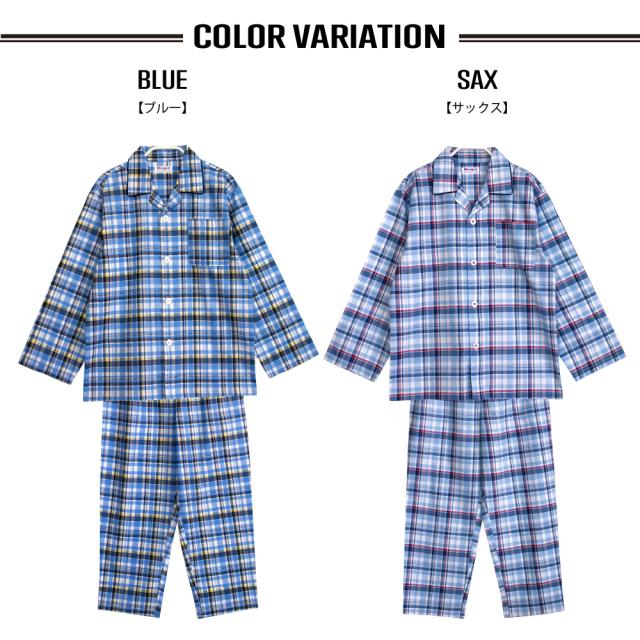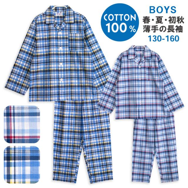 パジャマ キッズ 男の子 綿100% 長袖 春 夏 初秋 前開き ボタン チェック柄 薄手のシャツ ブルー サックス 100 110 120 130 140 150 160 子供 ジュニア ボーイズ おそろい メール便なら 送料無料