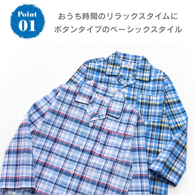 爽やかで明るいチェックが素敵なチェック柄のパジャマです。