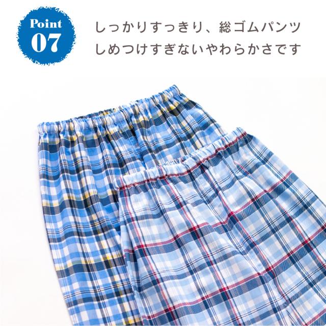すっきりとした薄手の生地は軽く風通しもよく、 サラリとした肌触りが気持ちのいいパジャマです。