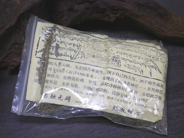 ゲルク派の創始者ツォンカパが1409年に自ら建立した寺院でありゲルク派の総本山ガンデン寺(甘丹寺)のある場所4200mから更にその上4380mで採取されたハーブで作られた除障香になります。
