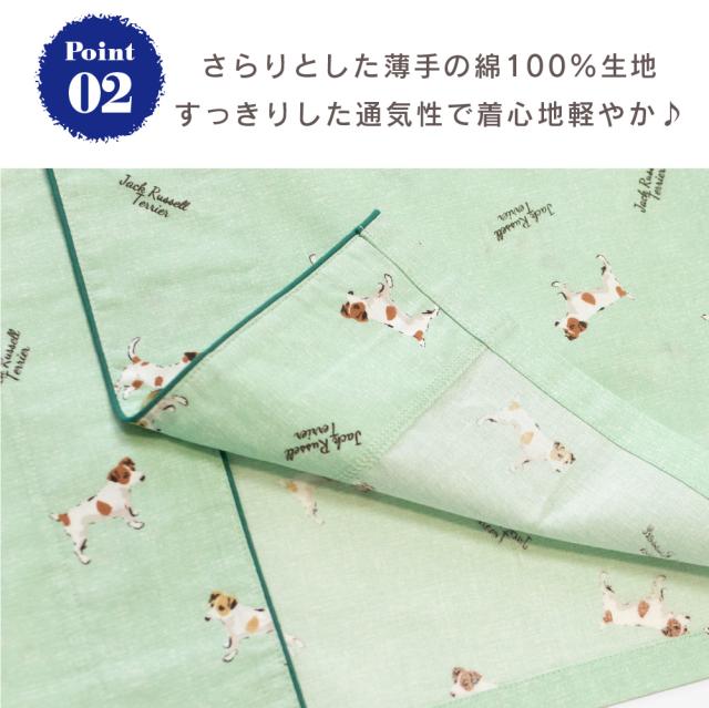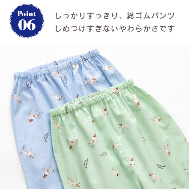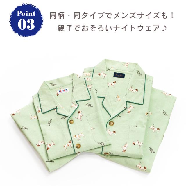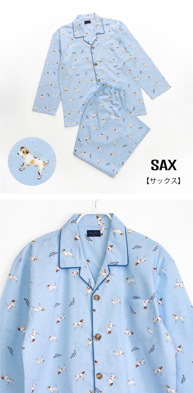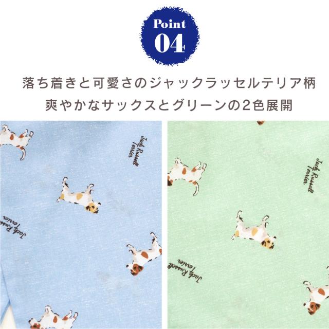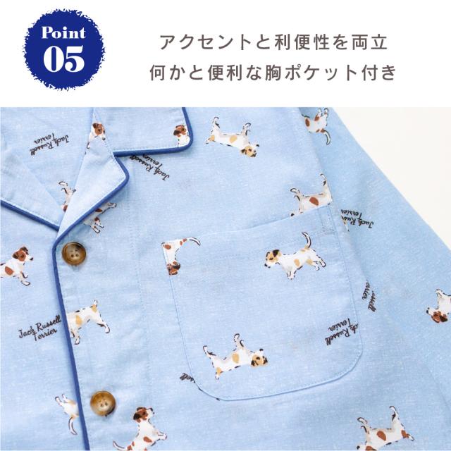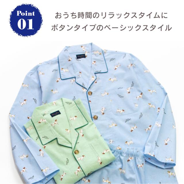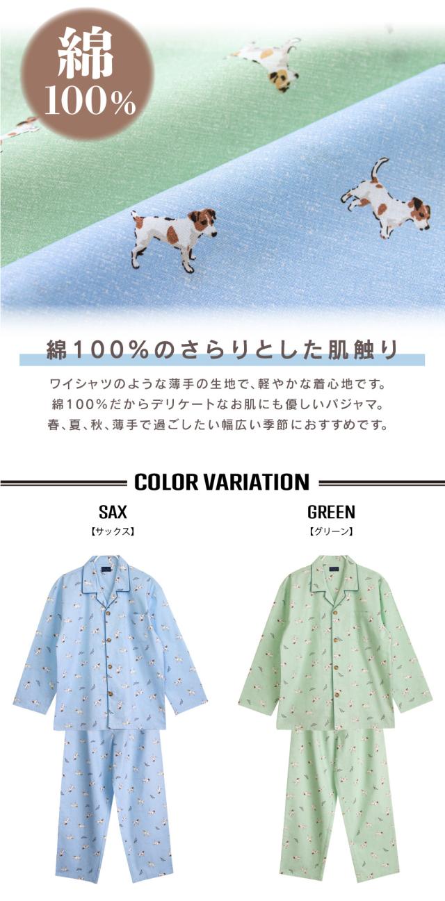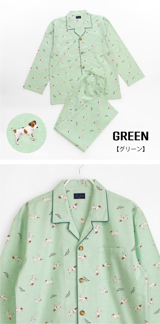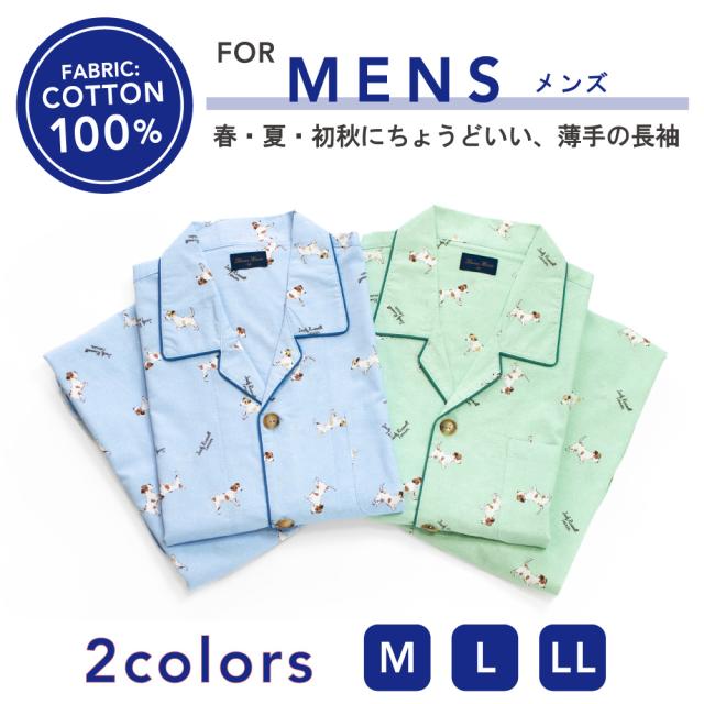 パジャマ メンズ 綿100% 長袖 春 夏 初秋 前開き ボタン ジャックラッセルテリア 犬柄 薄手のシャツ ブルー グリーン M L LL おそろい プレゼント 父の日