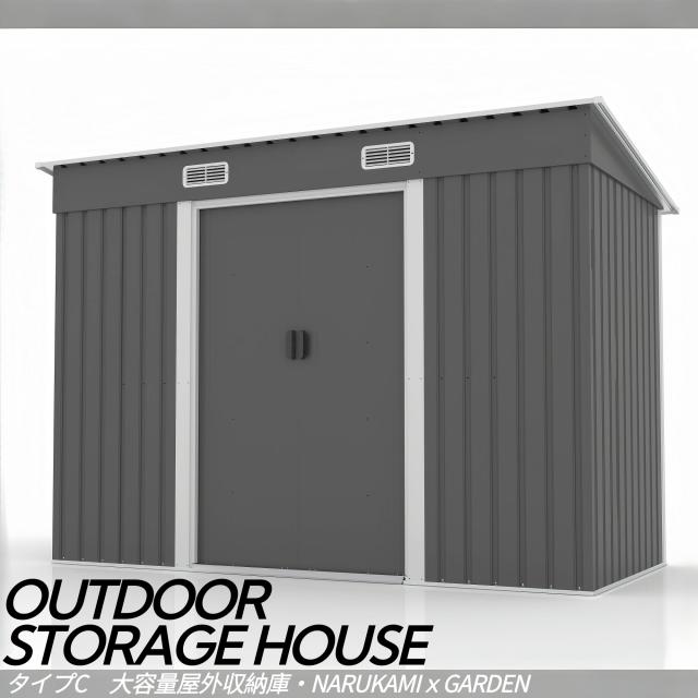 人気NO.1!10%還元中!NARUKAMI【TYPE C】大容量戸外収納庫 物置 防水/耐侯 収納可能 ガーデン/庭/田畑/農場 頑丈 大容量 スチール 引き戸 補強フレーム付き 換気口付き 物置 屋外 大型 倉庫 大型物置 GRAY・グレー