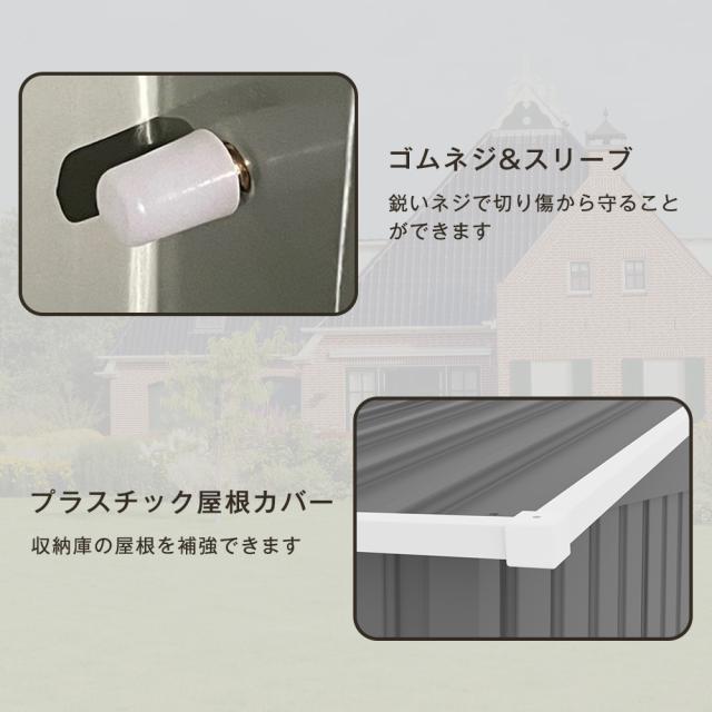 【屋根の溝は排水に役立つ】内部は濡れないために、斜面を設計しました。雨が降ると、屋根にたまることなく、斜面と凹槽を経由して地面に流れ落ちます。湿気から工具を守る頑丈で耐久性があり、変形しにくい、悪天候から内部の物品を保護します。
