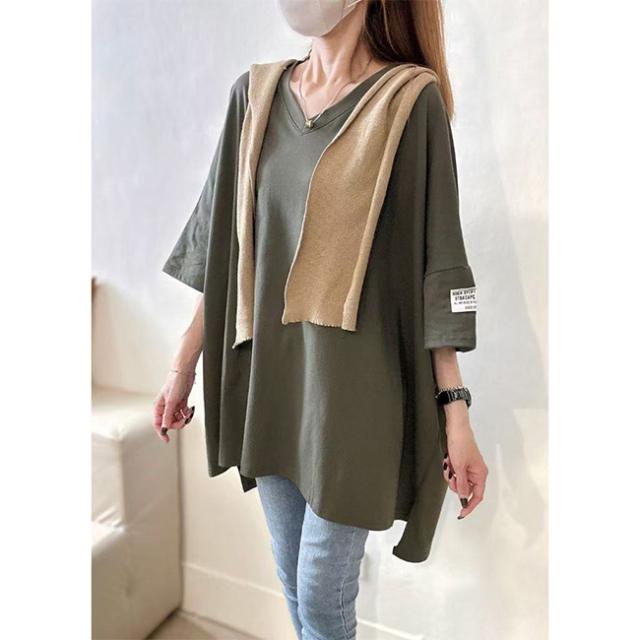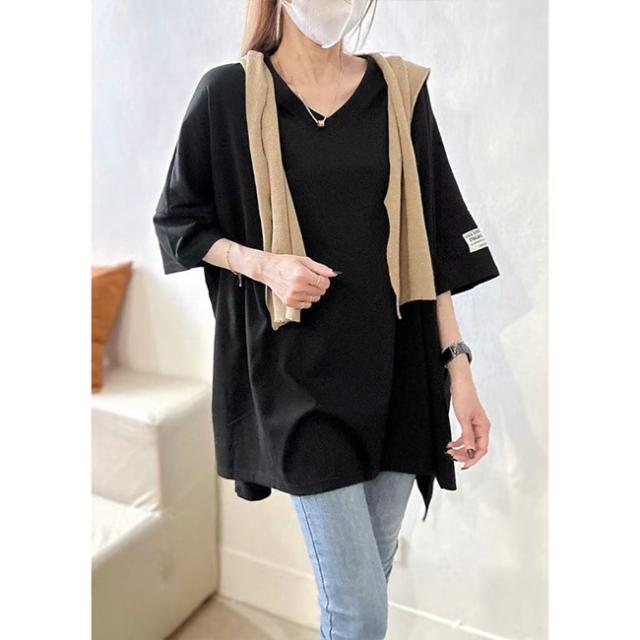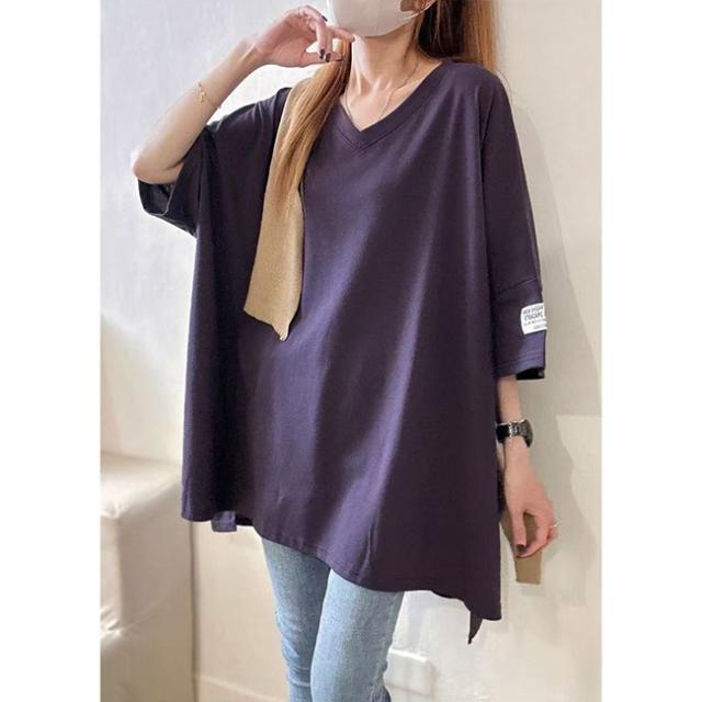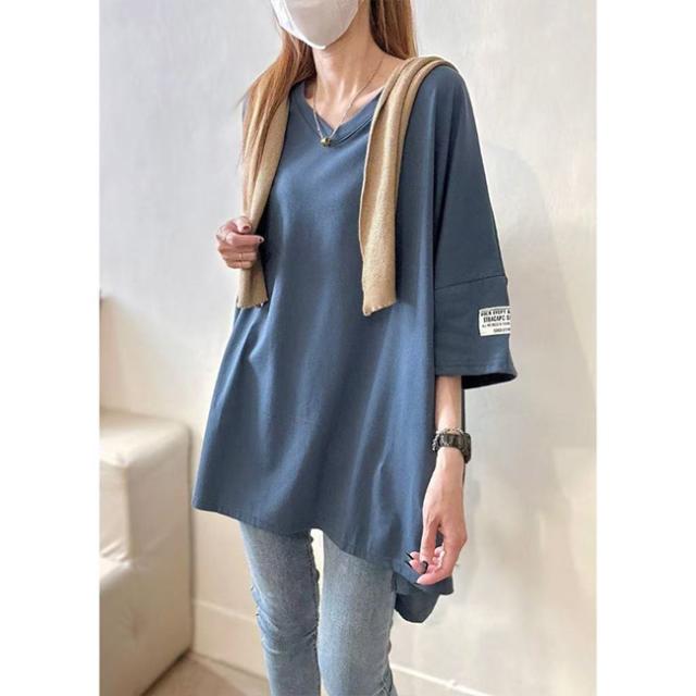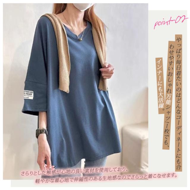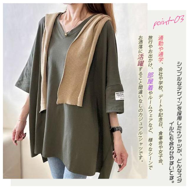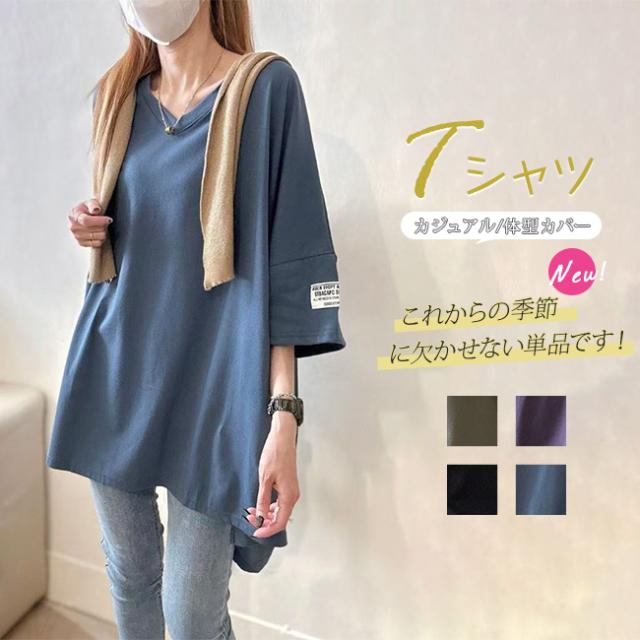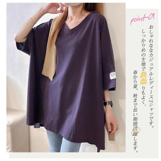 ロングtシャツ レディース 半袖Tシャツ ロング丈 ゆったり ビッグシルエット Vネック tシャツ カットソー カジュアル ビックtシャツ おしゃれ 大きいサイズ 夏服 tシャツ無地 快適 春 夏