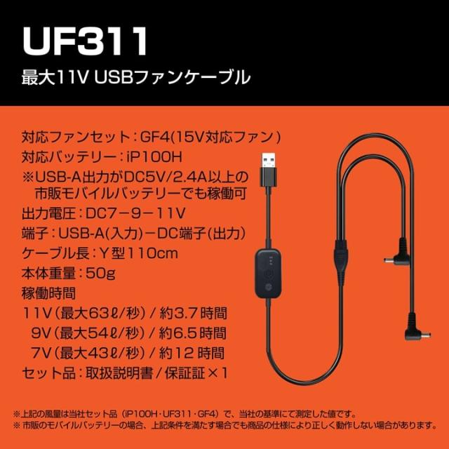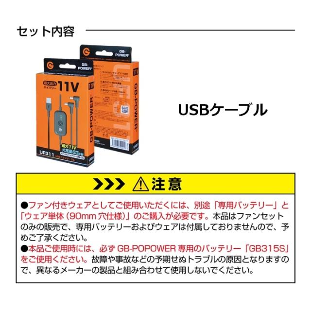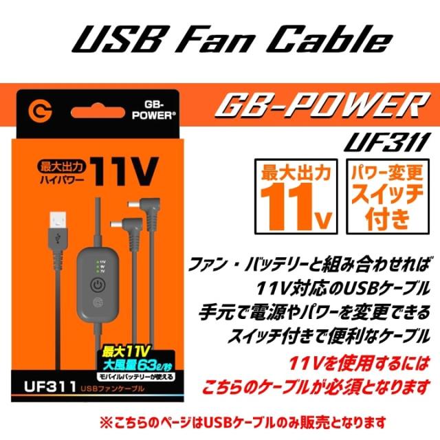 【即日発送】空調服用 (11V専用ファンケーブル) GB-POWER UF311 USBファンケーブル 10050mAh 空調ウェア ファン付きウェア対応 EFウェア 熱中症対策 春夏 作業服 作業着 長信ジャパン