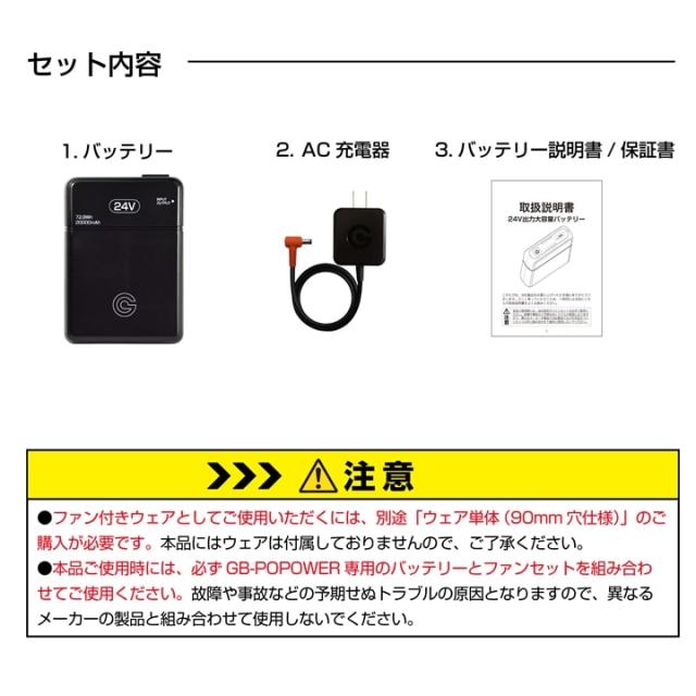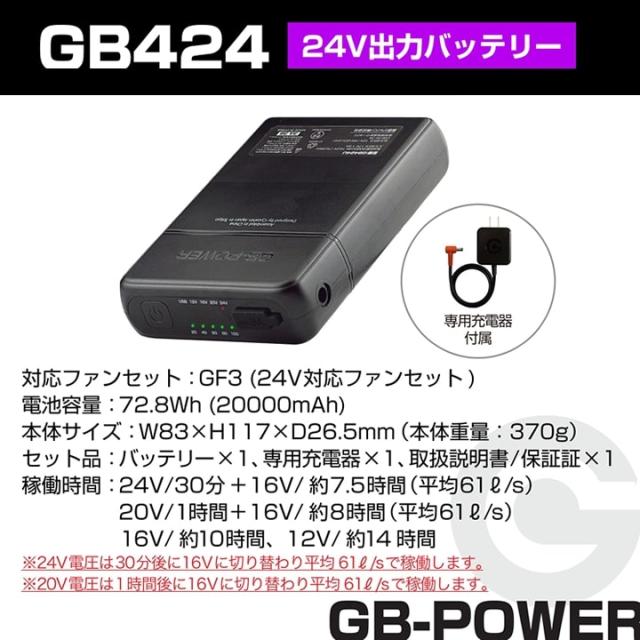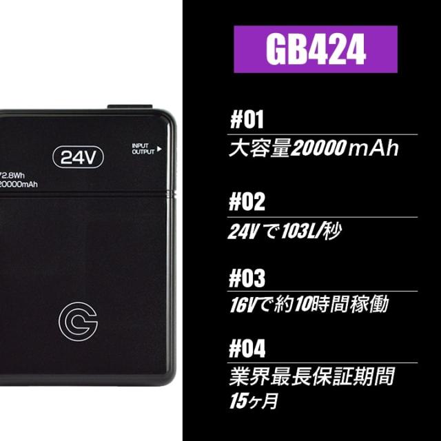 【即日発送】空調服用(24V専用 バッテリーセット) GB-POWER GB424 バッテリー 簡易防水 LG製リチウムイオン電池 15か月保証 軽量 空調ウェア ファン付きウェア対応 EFウェア 急速充電 熱中症対策 春夏 作業服 作業着 長信ジャパン
