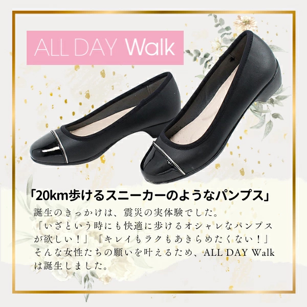 ALL DAY Walk(オールデイウォーク)は20km歩けるパンプスを目標に開発されました。