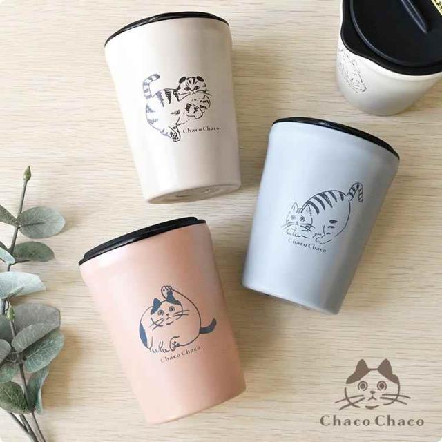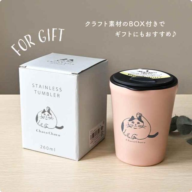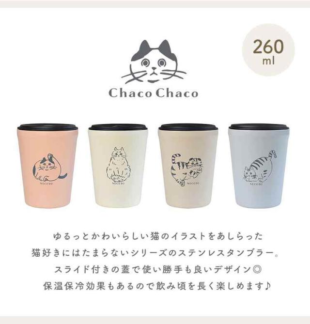 タンブラー 蓋付き コップ こぼれない 保温 保冷 猫 ねこ おしゃれ かわいい ステンレスタンブラー 真空断熱 250ml ChacoChaco 猫雑貨 猫好き ギフト プレゼント 箱付き スライド蓋 洗いやすい 動物 アニマル 女性 母の日 誕生日 お祝い ピンク アイボリー グレージュ ブルー