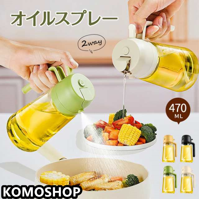 2way 470ML 片手 オイルスプレー オイルポット オイルボトル 醤油差し 自動開閉 霧化ボトル 調味料入れ オイル差し 醤油スプレー 液だれしない ガラスボトル