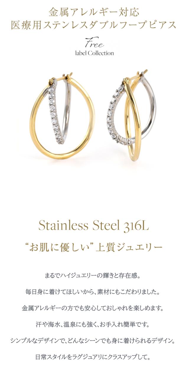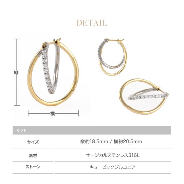 ステンレス ピアス フープ フープピアス 大きめ ダブルフープ サージカルステンレス 金属アレルギー レディース ゴールド ジルコニア キャッチレス つけっぱなし シンプル ファーストピアス セカンドピアス 中折れ アクセサリー クリスマス プレゼント 女性 誕生日