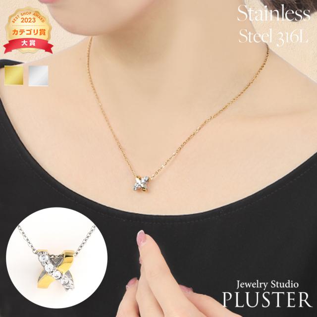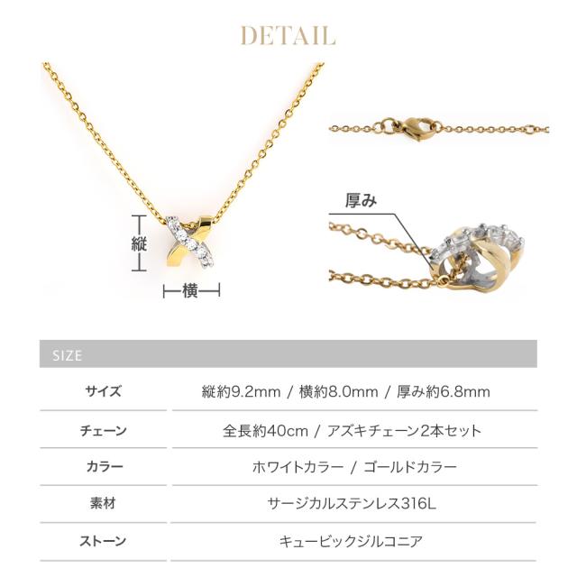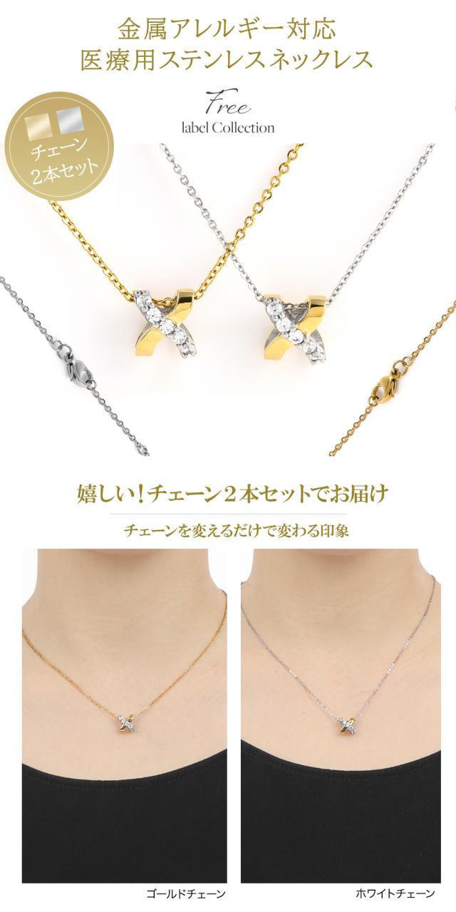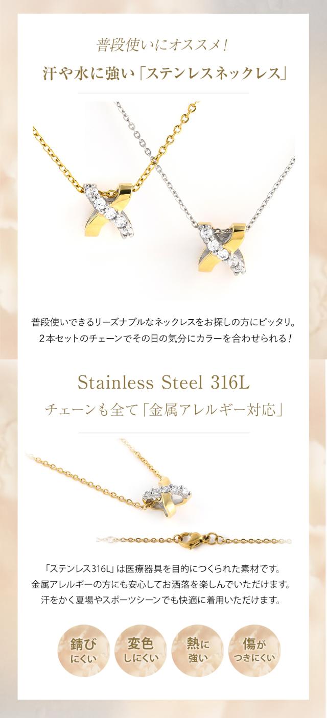 ネックレス レディース 大人 サージカル ステンレス チェーン ジルコニア ゴールド シルバー ホワイト ステンレスネックレス 2way 2wayネックレス 40cm 金属アレルギー対応 ステンレス316L 金属アレルギー クロス ブランド アレルギー シンプル クリスマス プレゼント