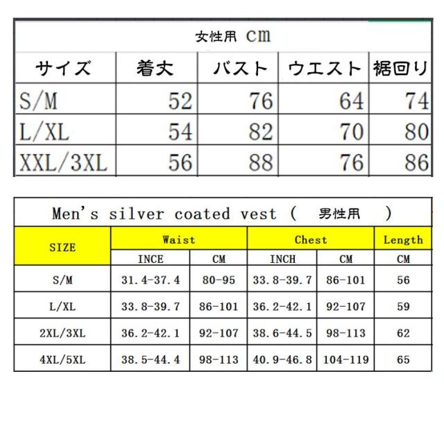 | 大量発汗 サウナベスト 脂肪燃焼効率UP! 男性用/女性用 S-5XL 【おすすめポイント】 ・気になる箇所で集中発汗 気になるお腹や背中周りで ・発汗し、脂肪燃焼を促進 適度な加圧で瞬間スリム ・お腹周りに圧を加える特別設計 薄くても耐久性の高い素材 ハードなトレーニングにも耐えられる素材を採用 ●ポイント1 特殊生地による発汗力 速乾素材は汗を素早く吸収して体を乾燥させ、保温ポリマーは皮膚の水分を保持して乾燥を防きます。この組み合わせにより発汗効果が最大限に引き出されます。 ●ポイント2 発汗効果を高める3層構造 ・外側からの冷気を通さに くくし保温効果を高めます ・中間層 PUシルバーコート採用 優れた保温性と蓄熱性で新陳代謝アップ ・ナノコーティング層 熱を逃さない保温効果で発汗力UP ●ポイント3 動きやすいストレッチ素材 ストレッチ伸縮素材を採用しているため、動きやすく運動に最適! ウオーキング、ランニング、筋トレやヨガなどのエクササイズ時や普段の防寒着としてもお使い頂けます。 ●ポイント4 シャカシャカしない静音生地 柔らかでなめらかな素材なのでシャカシャカ音が発生しづらく周りを気にせずトレーニングできます。 ●ポイント5 高い保温性PUシルバーコートを採用 厳選したPUシルバーコーティング採用。高い保温・蓄熱性により運動時の発汗を促進。 優れた伸縮性と耐久性 ボリエステルとシルパーコーティングは耐水性強い同時に変形や引き製きがしにくい。 素材の性質上、手洗いでのお洗濯を推奨しておりますが、洗濯機でのお洗濯や脱水もOK! | |