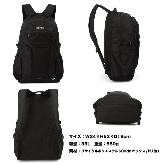 【商品レビューで+5%】チャンピオン Champion スクールバッグ リュック メンズ レディース リュックサック 軽量 大容量 男女兼用 デイパック バックパック 33L ジュニア 学生 大学生 高校生 中学生 B4 通学 通勤 部活 人気 シンプル カバン 黒 68582