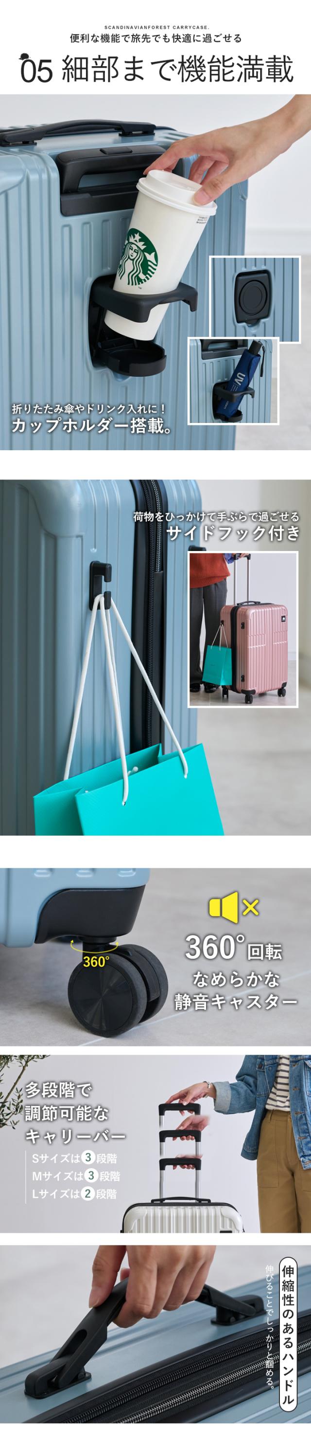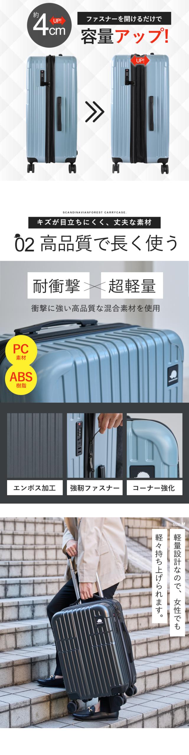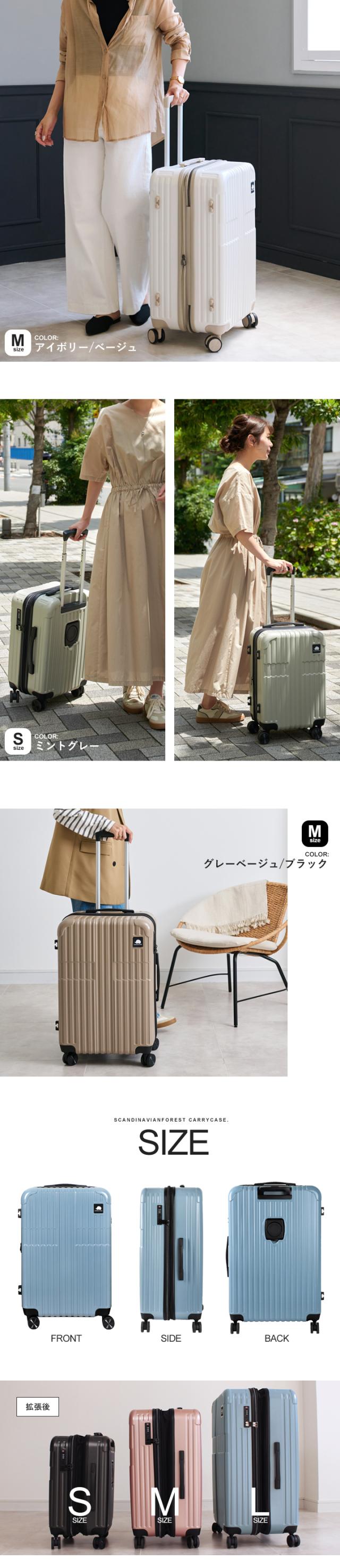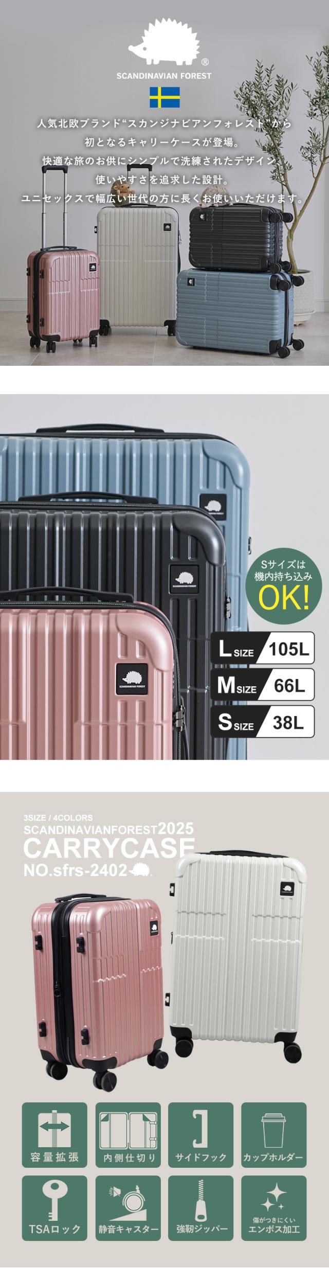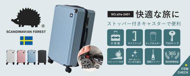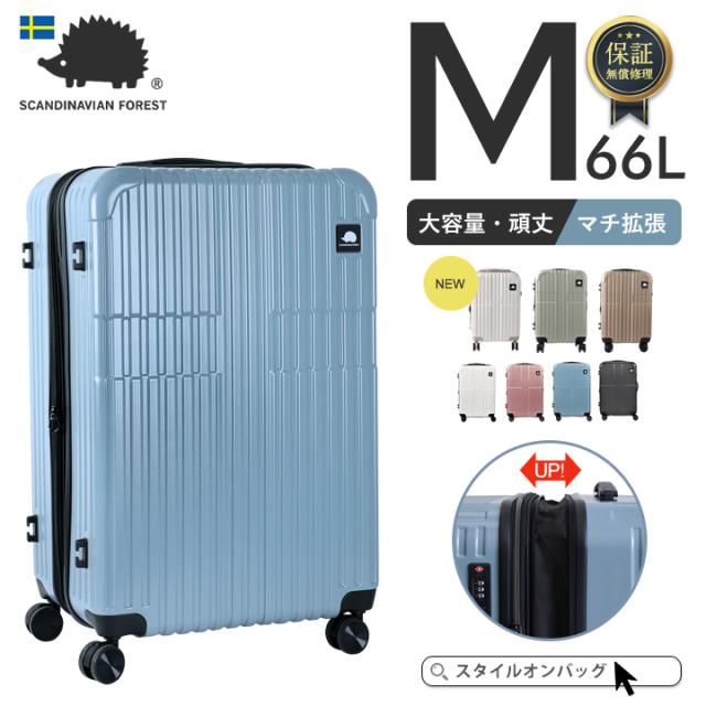 スーツケース キャリーケース SCANDINAVIAN FOREST 機内 持ち込み キャリーバッグ 軽量 頑丈 丈夫 M 大容量 4泊 7泊 66L マチ拡張機能 容量拡張 ドリンクホルダー 静音 出張 国内旅行 海外旅行 TSAロック かわいい オシャレ 北欧 moz【sfrs-2402-M】