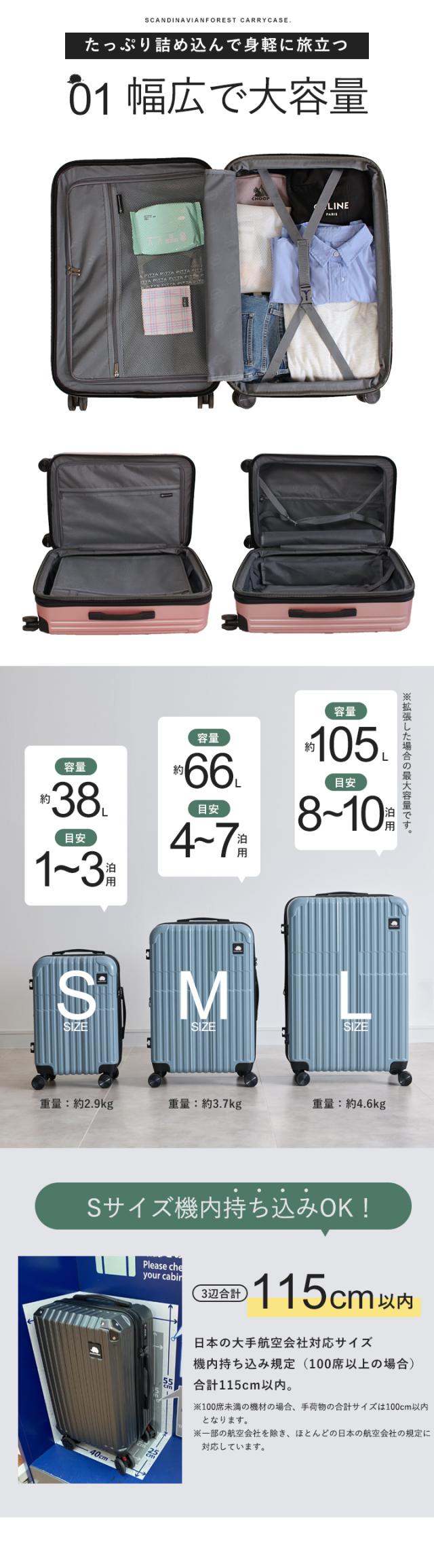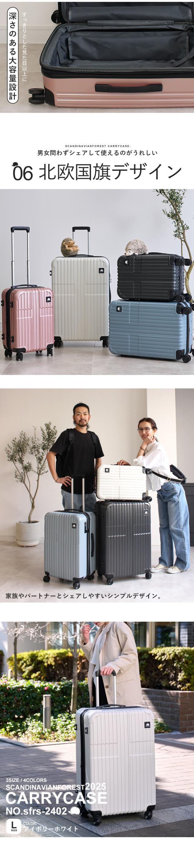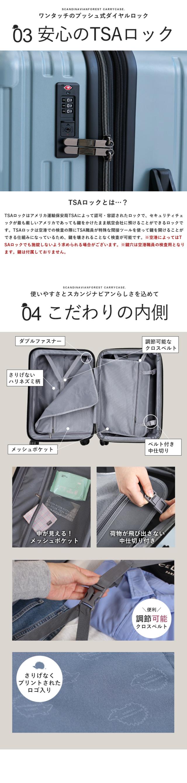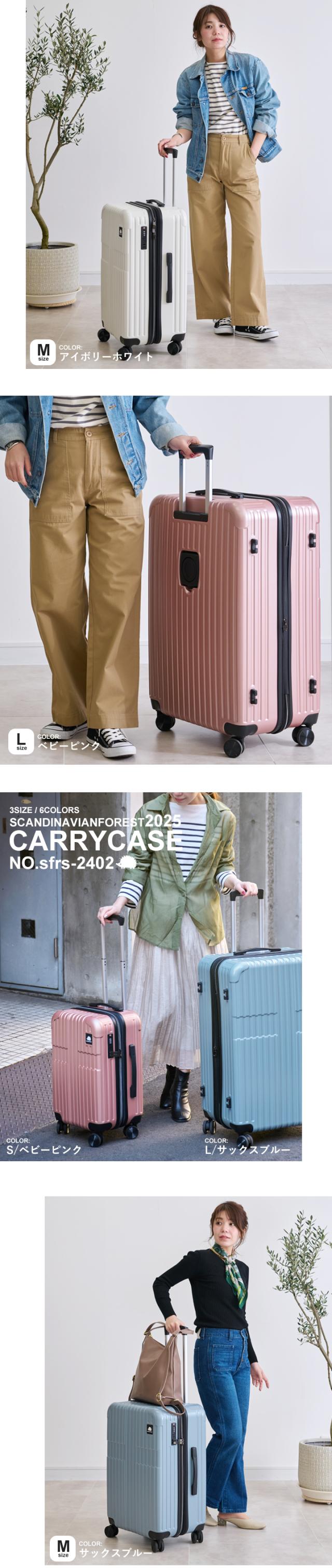 スーツケース キャリーケース SCANDINAVIAN FOREST 機内 持ち込み キャリーバッグ 軽量 頑丈 丈夫 M 大容量 4泊 7泊 66L マチ拡張機能 容量拡張 ドリンクホルダー 静音 出張 国内旅行 海外旅行 TSAロック かわいい オシャレ 北欧 moz【sfrs-2402-M】